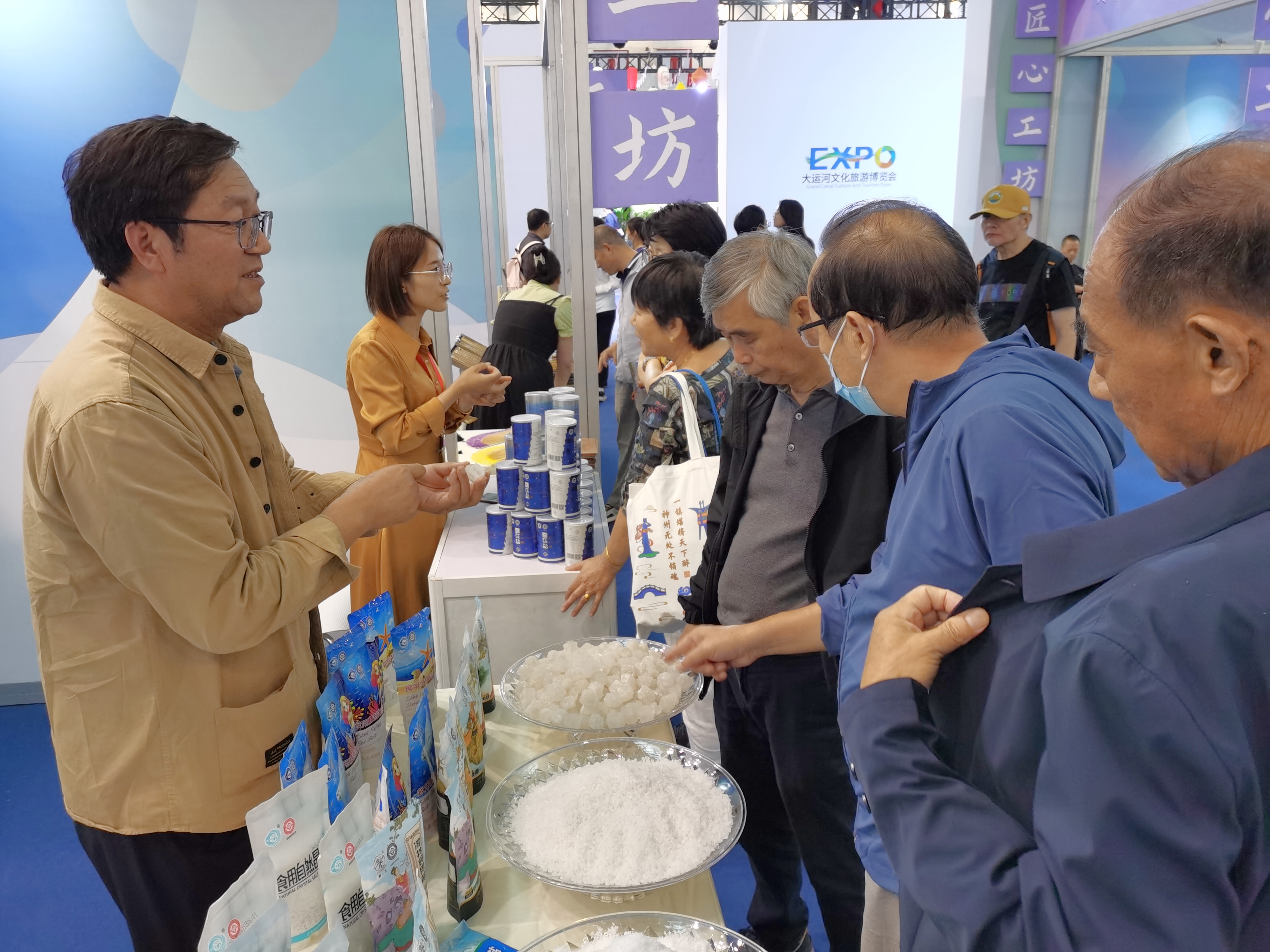 9月21日至24日,江苏省委宣传部和江苏省文化和旅游厅等共同主办的第五届大运河文化旅游博览会在苏州工业园区举办,爱体育首页(中国)网页版公司的国家级非遗项目“淮盐制作技艺”受邀参展。这次共展示了加碘精制盐、颗粒盐、雪花盐、低钠盐等“古淮”“猴王”品牌的20余个食盐品种。