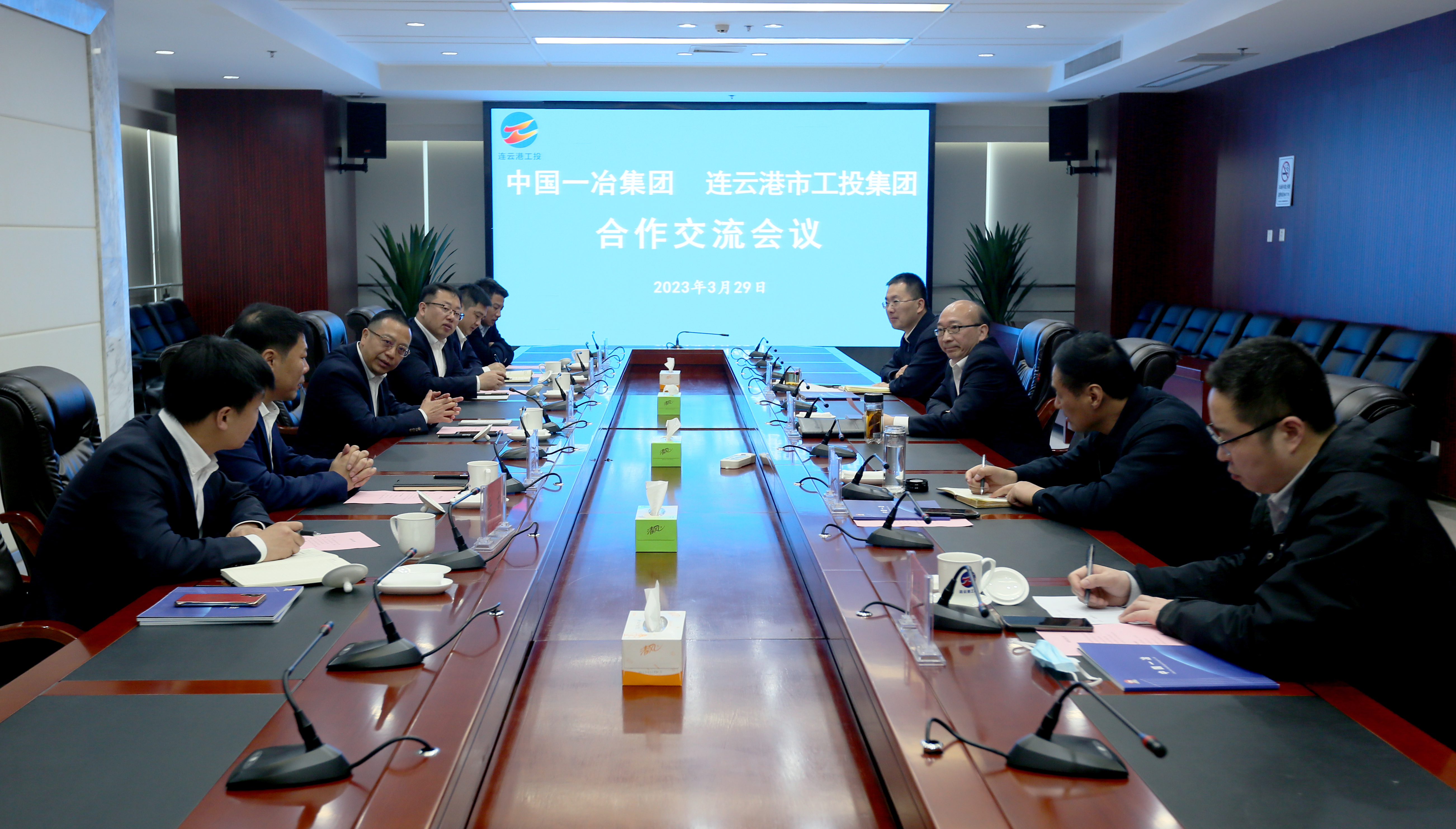 3月29日上午,中国一冶爱体育首页(中国)网页版常务副总经理朱小友,中国一冶上海公司党委书记、总经理李紫绿等一行来爱体育首页(中国)网页版公司座谈交流。公司党委书记、董事长丁锐,副总经理陈如军,总会计师闫超群等参加座谈。会上,双方分别介绍了企业发展历程、业务板块、品牌文化等基本情况,并就投融资、招商引资、园区开发运营、产业链发展等方面合作交换了意见。