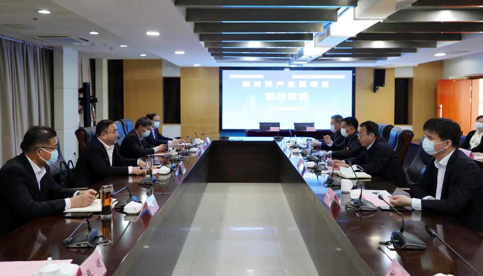 4月21日上午,爱体育首页(中国)网页版公司与东海经济开发区在东海县政府举行新材料产业园项目签约仪式。副市长、东海县委书记宋波,县长张其兵、常务副县长欧伟、县委常委刘峰,爱体育首页(中国)网页版公司党委书记、董事长杨龙,常务副总经理杨国新、副总经理刘承志出席签约仪式。
