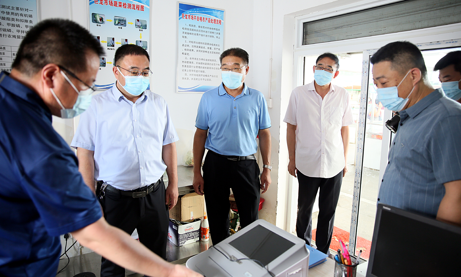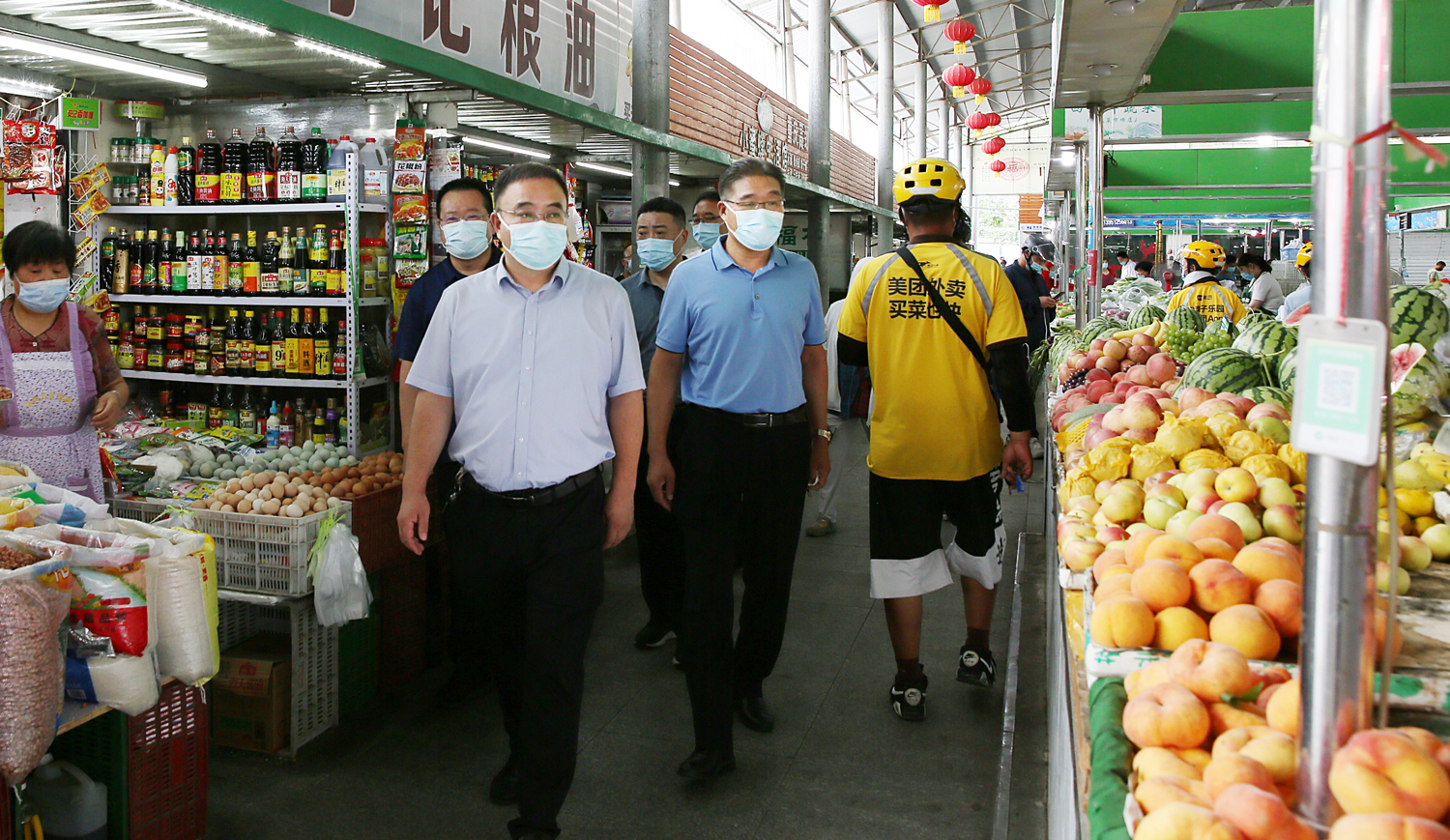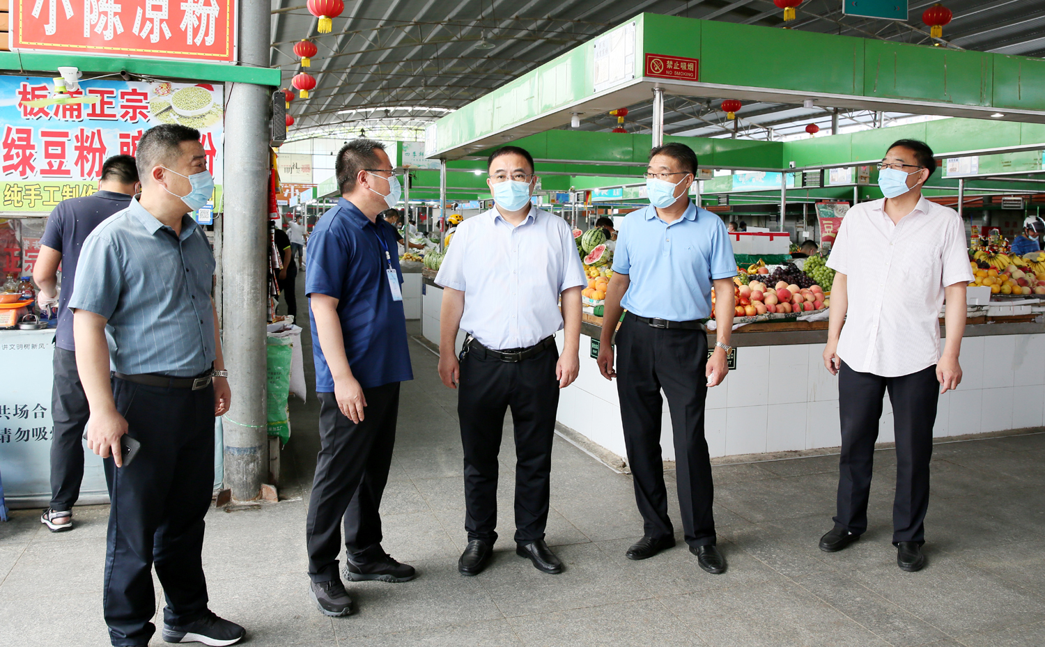 8月5日,爱体育首页(中国)网页版公司党委书记、董事长、疫情防控领导小组组长杨龙深入巨龙农贸市场督导疫情防控工作。他强调,要深入贯彻中央、省市委疫情防控指示精神,保持疫情防控高压态势,抓实抓细抓严各项措施,守护好市民的“菜蓝子”“米袋子”。爱体育首页(中国)网页版公司工会主席、疫情防控领导小组办公室主任刘承志,金航资产经营公司相关负责人陪同督导。 杨龙一行按防疫要求完成体温测量、苏康码扫码后,进入市场区域,认真察看市场内口罩佩戴、扫码查验、体温检测等基础防疫措施,仔细询问人员管控、防疫消杀等制度落实情况。查看了解粮油肉蛋奶及水果、蔬菜等重要食品的市场供应、保质稳价等情况。杨龙指出,农贸市场人员流动性大、接触频繁,是疫情防控的重要区域。金航公司要切实落实好主体责任,按照市疫情防控指示精神和爱体育首页(中国)网页版“十排查”“十到位”的要求,严格落实好各项措施,做好入口人员管理,严格落实体温检测、佩戴口罩、健康码扫码等工作,全面落实环境清洁消毒。要严把食品安全关,严格履行相关手续,确保食品流通各环节安全可控。要规范经营,确保市场食品供应充足、价格稳定、消费安全。同时要积极引导群众和工作人员做好自我防护,保持良好卫生习惯,倡导健康生活方式。