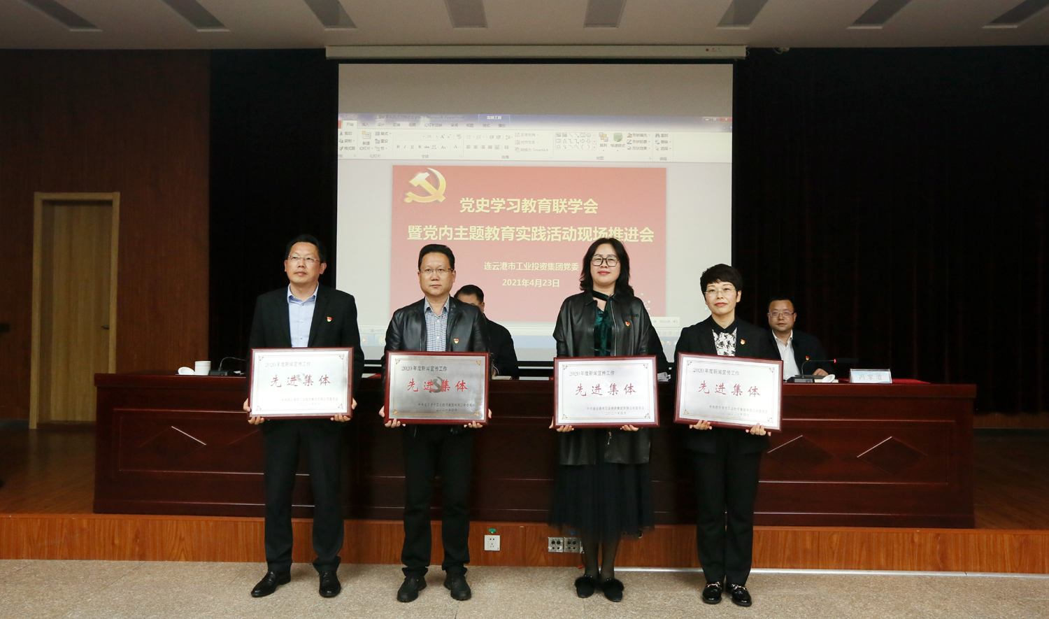 下半时,对2020年度新闻宣传工作先进集体、先进个人和《连云港工投》好新闻进行了表彰,安排部署近期党史学习教育、基层党建重点工作和“七一”庆祝活动等相关事项,与会人员还现场观摩了氨纶公司党建品牌“三三工程”特色做法。