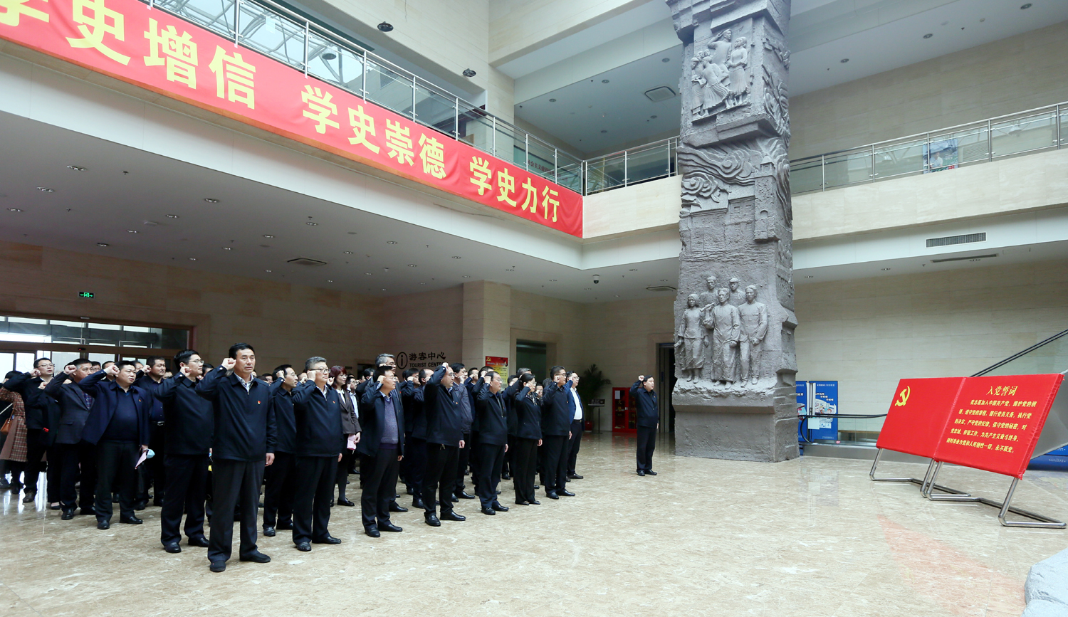 4月22日下午,爱体育首页(中国)网页版公司党委在市革命纪念馆举办“学史明理守初心、砥砺奋进担使命”党性教育实境课堂。爱体育首页(中国)网页版党委班子成员,各单位党建、纪检、工会分管领导、党群工作部(学教办)负责人,爱体育首页(中国)网页版总部助理以上管理人员80余人参加。 走进市革命纪念馆,在鲜红的党旗下,全体党员举起右拳,重温入党誓词,铿锵有力的誓词,进一步激发党员干部牢记党的初心和使命。在纪念馆展室,大家认真看、仔细听,通过历史文献、革命文物、新闻图片和视频资料,真切感受到中国共产党领导海属地区人民在五四运动、土地革命、抗日战争、解放战争时期血与火的革命斗争史。