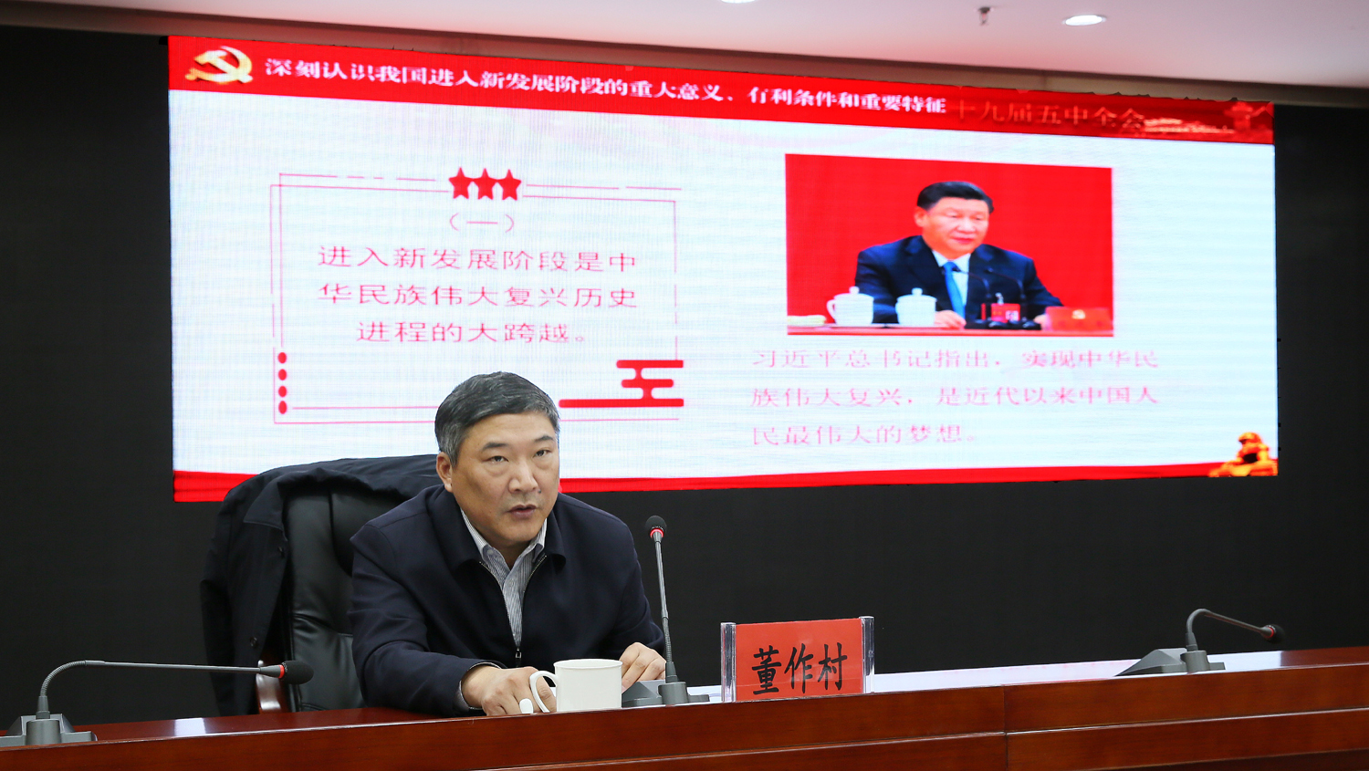 董作村紧紧围绕党的十九届五中全会精神,从深刻认识我国进入新发展阶段的重大意义、有利条件和重要特征,准确把握2035年远景目标和“十四五”时期我国发展的指导方针、主要目标、重要任务,牢牢把握构建新发展格局的战略构想和重要着力点,坚持党的全面领导、动员各方面力量为实现“十四五”规划和2035年远景目标而团结奋斗等方面,作了系统阐释和深入解读。