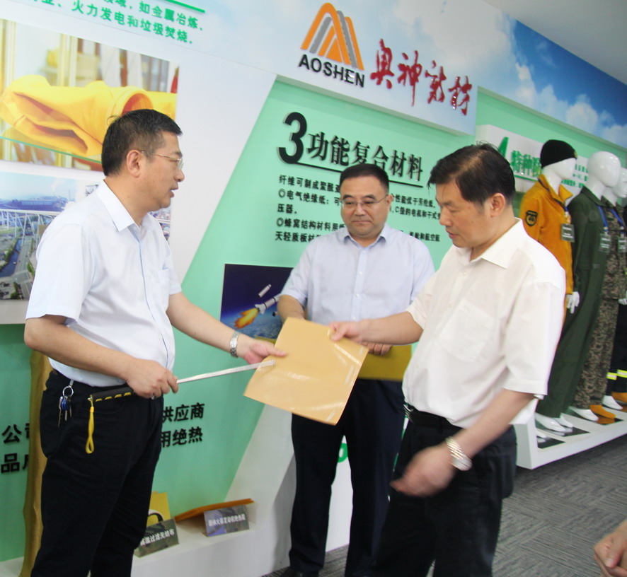7月15日,市政协副主席鲁林带领政协提案委及市相关部门领导到爱体育首页(中国)网页版纤维新材料板块实地考察,就推动我市化纤产业加快发展等重点提案进行督办,爱体育首页(中国)网页版公司党委书记、董事长杨龙,奥神新材料公司董事长、副总经理王士华参加调研。