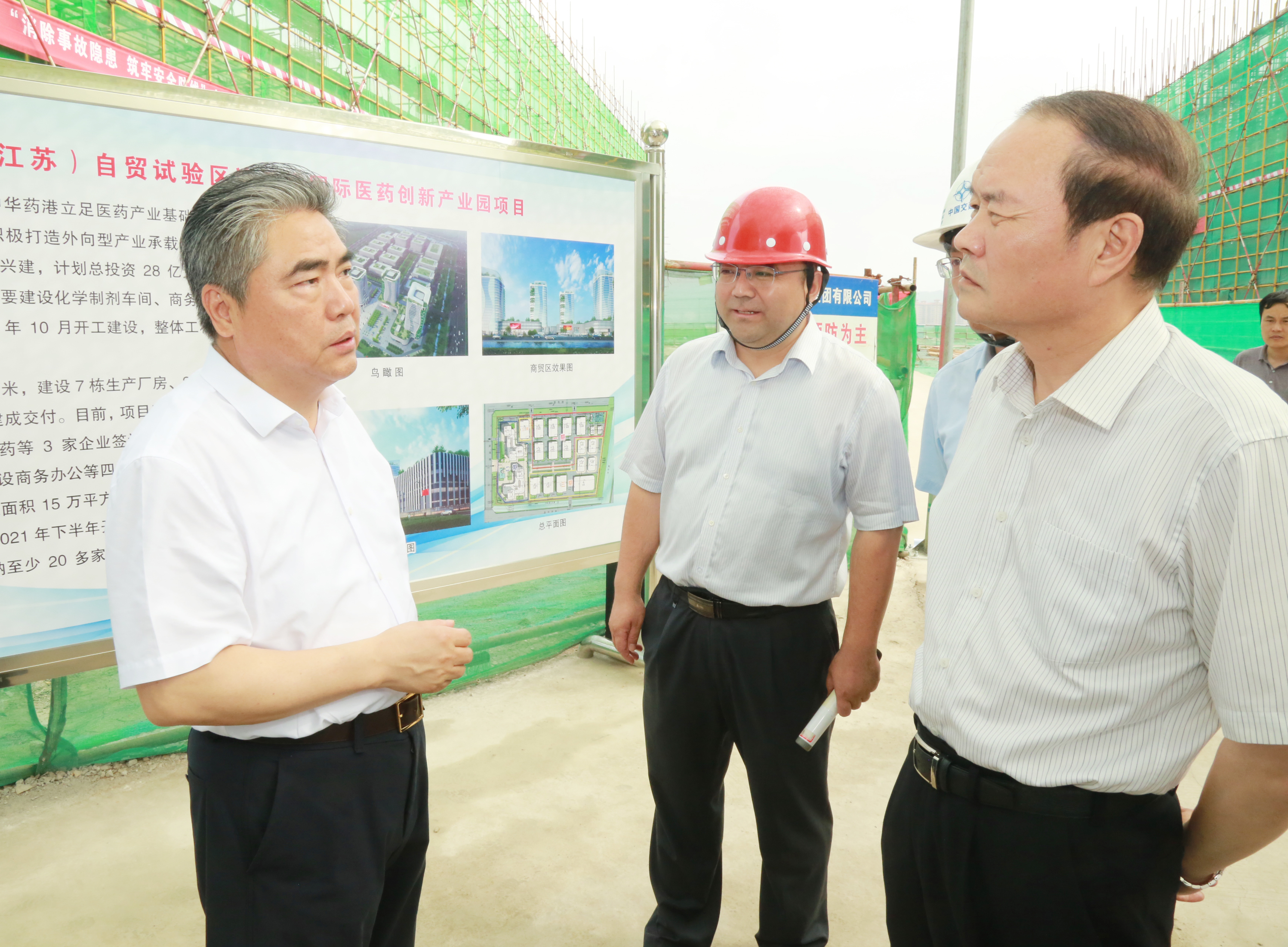 6月22日下午,市委书记、市人大常委会主任项雪龙调研位于自贸区的我公司“中华药港国际医药创新产业园”项目建设情况。市委常委、常务副市长胡建军,市委常委、市开发区党工委书记尹哲强,市委常委、秘书长黄远征,爱体育首页(中国)网页版公司党委书记、董事长杨龙参加调研。