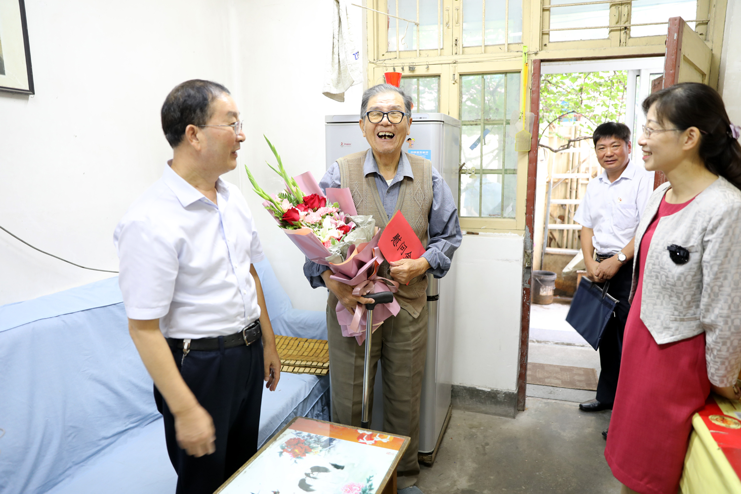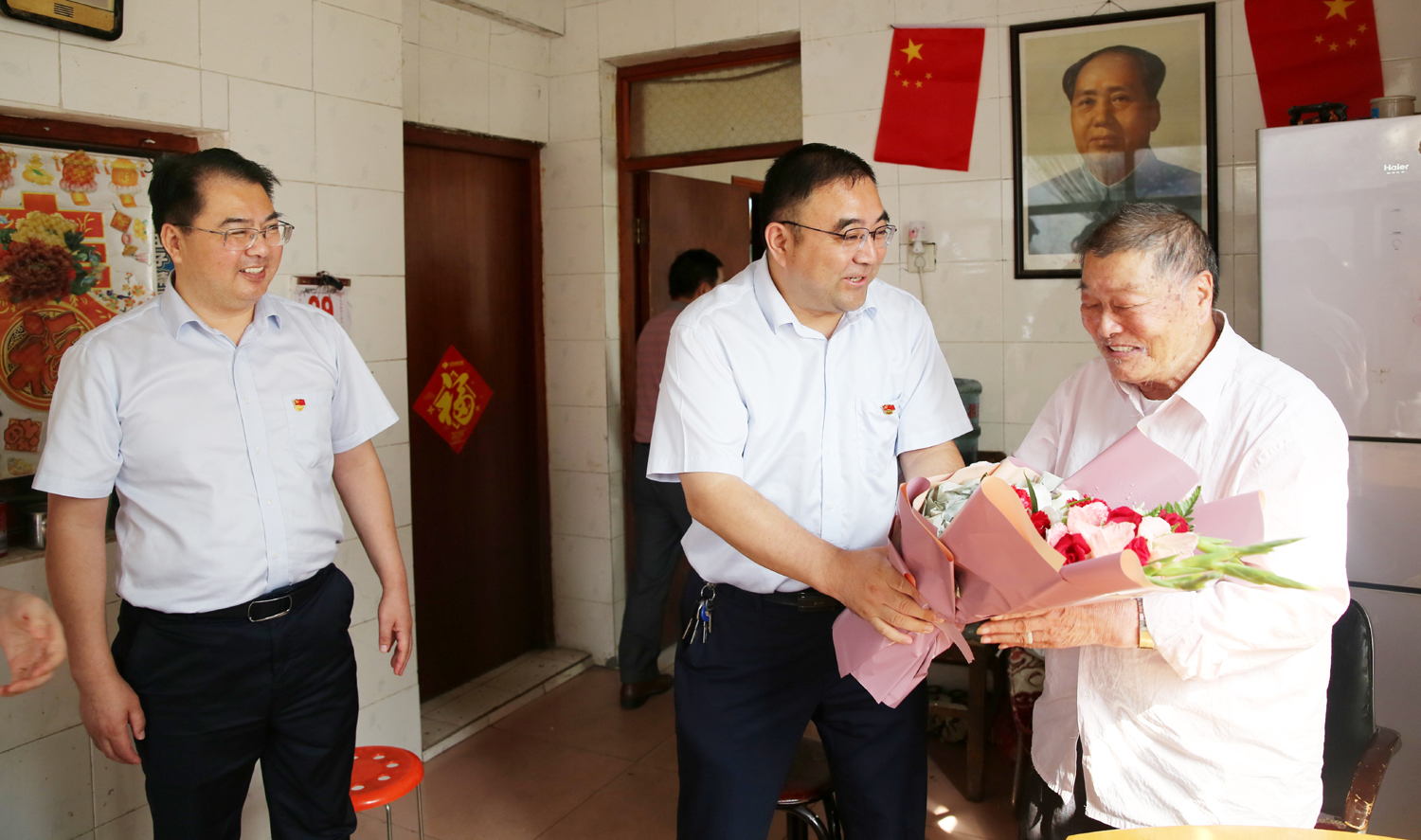 爱体育首页(中国)网页版公司董事长、党委书记杨龙,总经理胡建明、党委副书记戴鸿鸣、纪委书记汪群等领导分组走访慰问部分建国前参加工作的老党员、老干部,为他们送去慰问金和鲜花,同庆新中国七十周岁华诞。