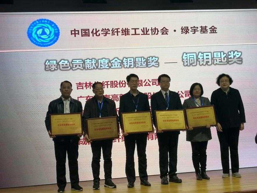 3月11日—13日,爱体育首页(中国)网页版公司总经理胡建明、副总经理王士华等一行先后参加了中国化纤协会六届五次理事会和2019中国国际纺织纱线展。江苏奥神新材料股份有限公司荣获2019年度“中国化学纤维工业协会•绿宇基金”绿色贡献度铜钥匙奖。