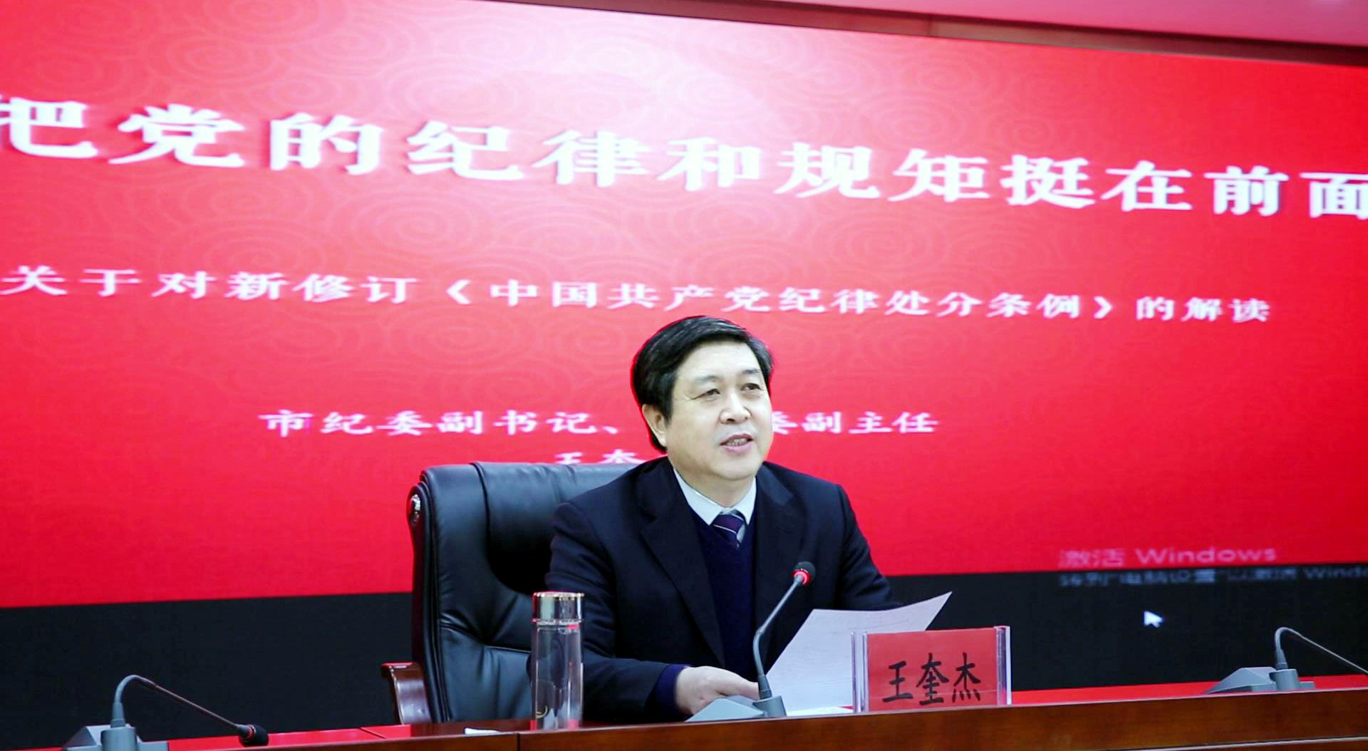 王奎杰围绕要充分认识新《条例》的重大意义,切实增强学习贯彻的自觉性和坚定性;要认真学习新《条例》的增改内容,引导党员干部做到心有所畏、言有所戒、行有所止;要迅速掀起新《条例》学习宣传热潮,着力推动全面从严治党向纵深发展等三个方面,对《条例》进行了深入解读,报告内容丰富、条理清晰、重点突出,对广大党员干部更好地学深学透《条例》具有很强的指导意义。