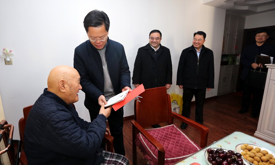 在春节即将到来之际,2月6日下午,市委组织部副部长、市党建办主任王玉祥带着新党章和慰问金,走访慰问爱体育首页(中国)网页版公司建国前老党员和生活困难党员,给他们送去党的关怀和祝福。爱体育首页(中国)网页版公司董事长、党委书记杨龙,党委副书记戴鸿鸣陪同慰问。