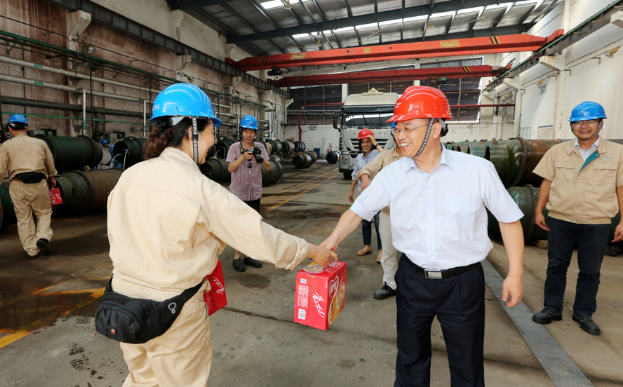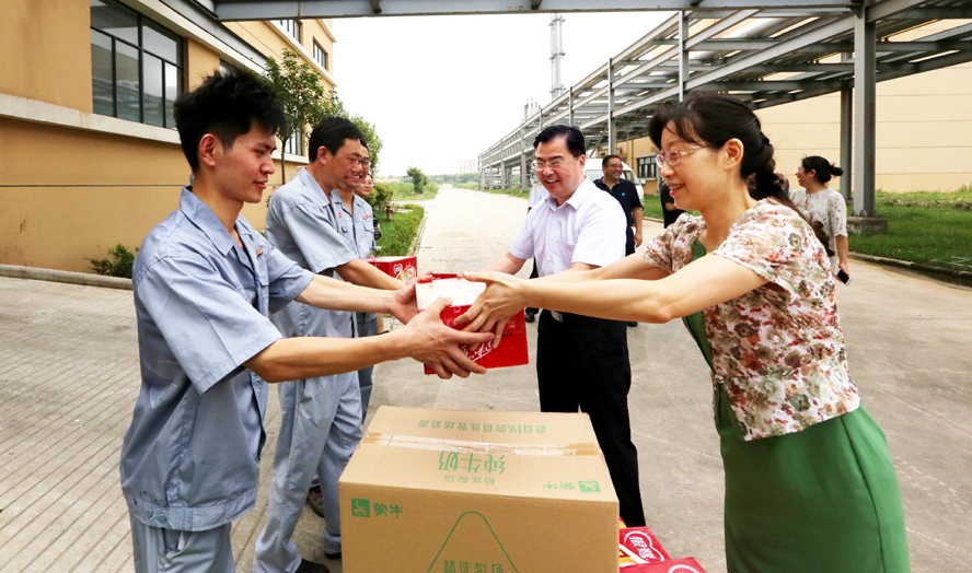 炎炎夏日送清凉,点滴关爱暖人心。连日来,骄阳似火,酷暑难耐。7月18-20日,爱体育首页(中国)网页版公司领导杨龙、胡建明、张其海、朱天松、戴鸿鸣、汪群、匡友本等轻车简从,分赴基层一线,进车间、入工地、到滩(田)头,慰问在高温下坚守岗位的广大员工,送去绿豆、白糖等防暑降温品,在炎炎夏日中将“清凉”送到职工心坎上。