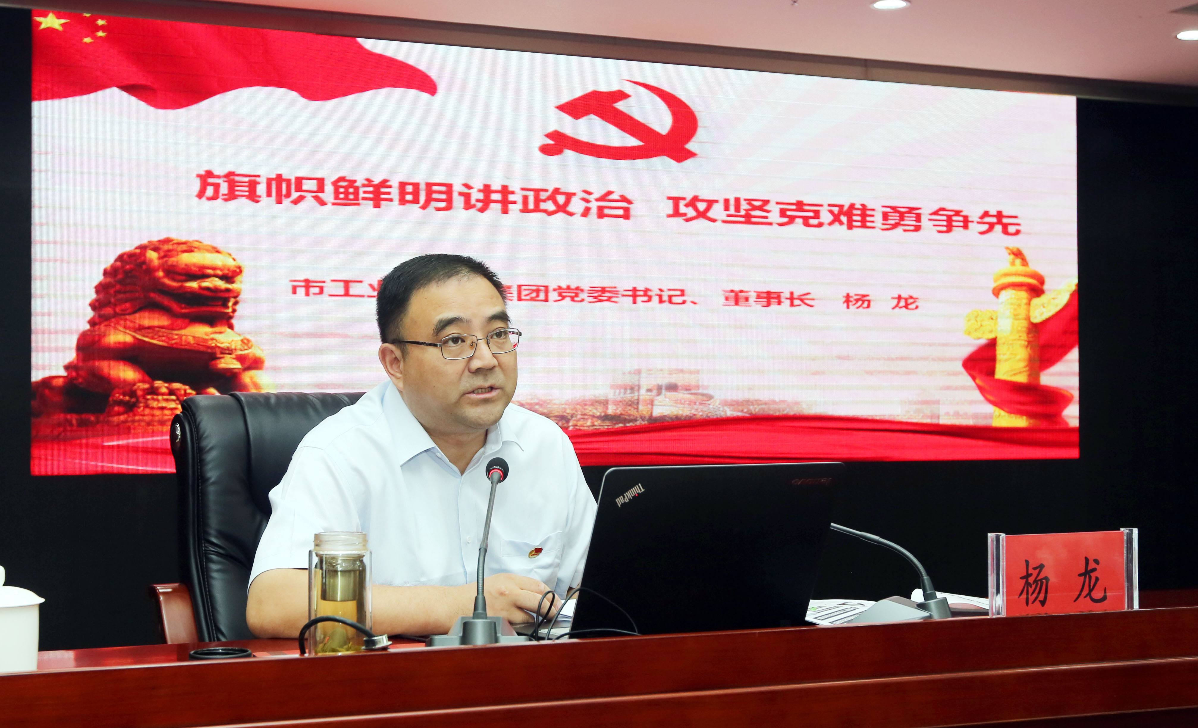 7月10日下午,爱体育首页(中国)网页版公司党委书记、董事长杨龙围绕“旗帜鲜明讲政治·攻坚克难勇争先”这个主题,在总部17楼会议室上专题党课,强调各级党组织和广大党员干部要全面落实省市委最新部署要求,切实增强旗帜鲜明讲政治的思想自觉和行动自觉。
