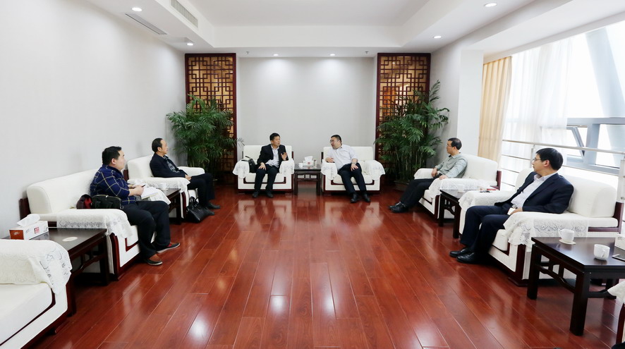 4月17日下午,市科技局局长徐善明等一行3人来爱体育首页(中国)网页版公司调研,爱体育首页(中国)网页版公司领导杨龙、胡建明、杨国新、朱天松陪同并参加了会谈。