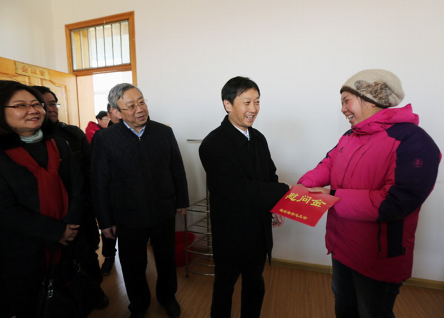 在慰问现场,市领导向困难劳模杨树庭和困难职工丁燕青,以及他们的家人表示新年的问候,详细了解他们家庭的生活困难和问题,并送上慰问金和慰问品。