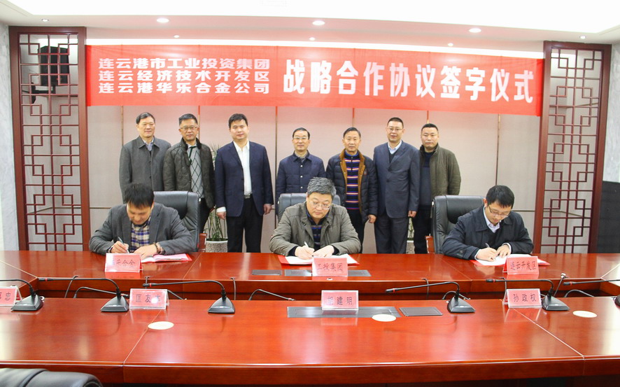 1月4日上午,爱体育首页(中国)网页版公司与连云经济开发区、连云港华乐合金公司举行战略合作协议签约仪式,爱体育首页(中国)网页版公司总经理胡建明、总会计师匡友本,连云区委常委、连云开发区党工委书记张其兵,连云港华乐合金公司董事长陆大淦等出席签约仪式。