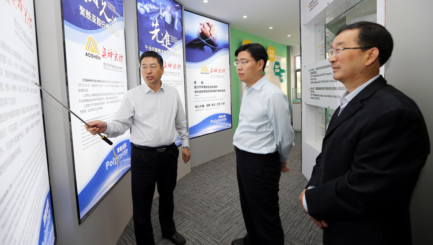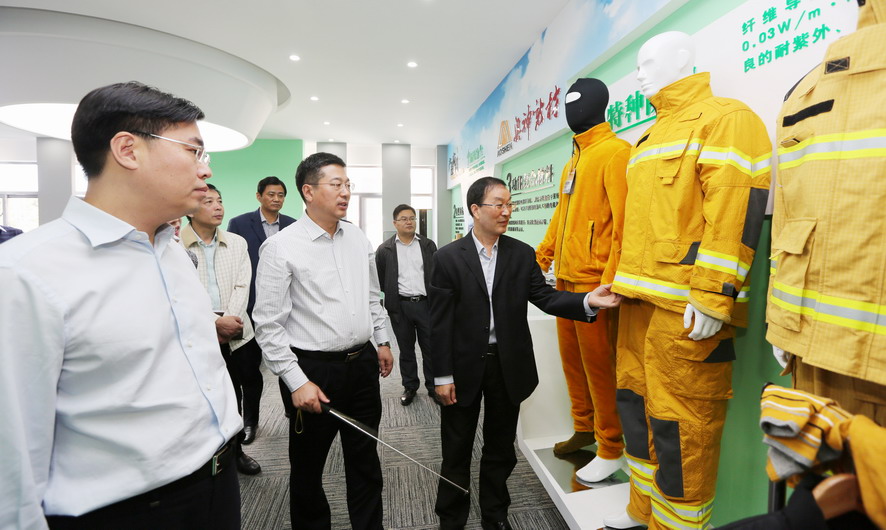 曹卫东一行先后参观了奥神新材料公司展厅和聚酰亚胺高性能纤维生产车间,并听取了相关情况汇报,对奥神新材料公司的研发能力和高性能纤维产业发展成效给予了充分肯定。曹卫东指出,奥神新材料公司成立五年来,以创新驱动转型为动力,致力推进企业技术创新、产品创新和市场创新,取得了令人瞩目的成绩。“十三五”期间,作为高性能纤维自主研发制造企业、聚酰亚胺纤维干法纺丝生产核心技术的掌握者,奥神新材料公司要进一步突出高、新、优特色,切实践行创新发展理念,加强自主知识产权保护,在聚酰亚胺纤维研发及生产方面着力突破新技术、提升创新力,推动产业高端化、规模化、集聚化发展,打造国内一流的新材料产业基地,为推动连云港市纤维新材料产业发展做出新的贡献。