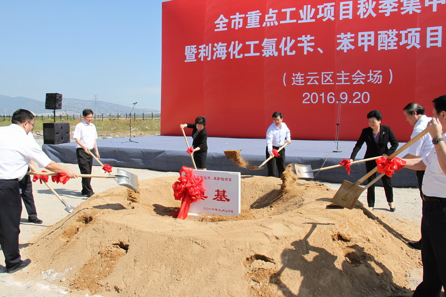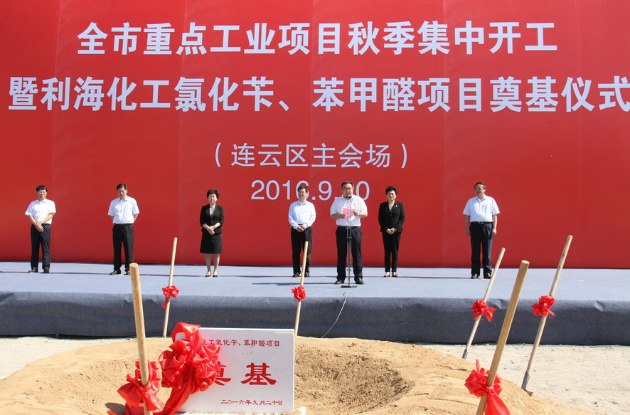9月20日,我市重点工业项目秋季集中开工(连云区主会场)暨利海化工氯化苄、苯甲醛项目奠基仪式在利海公司举行,市委书记、市人大常委会主任杨省世,市领导杨莉、董恕娟、徐家保、鲁林,爱体育首页(中国)网页版公司董事长、党委书记杨龙、总经理胡建明等出席开工仪式。