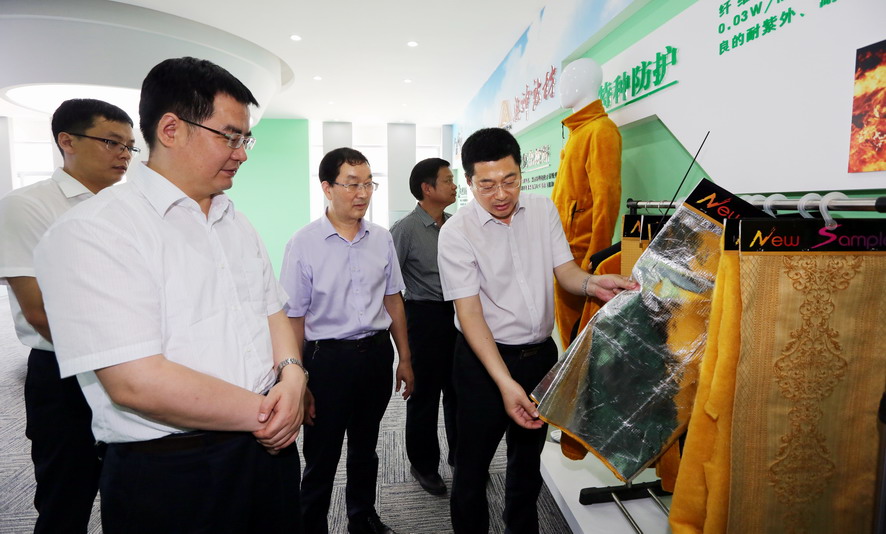 卢卫生副司长在参观了奥神新材料公司展厅和生产线后,听取了爱体育首页(中国)网页版公司总经理胡建明、副总经理王士华关于奥神新材料高性能纤维产业发展介绍,近年来,奥神新材料公司始终秉承“创业、专注、汇聚、引领“的核心价值观,以”致力于环境和生命的保护,成为全球领先的高性能纤维制造商“为发展愿景,不断追求技术创新,联合东华大学采用自主知识产权的干法纺丝生产技术开发聚酰亚胺纤维,在国际上属于首创。卢卫生副司长对此予以了充分肯定,并希望奥神新材公司要不断争取政策支持,继续加大与国内高校院所的产学研合作,以市场需求导向,追求产品差异化、特色化,延伸高新能纤维产业链,提升资源、渠道、品牌、标准等软实力,形成以“技术、品牌、绿色”为发展核心的竞争新优势,促进中国化纤行业的发展。