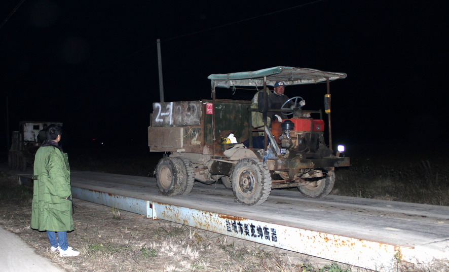 11月9日夜七时许,青口投资公司大新农场,工会副主席王士超作为巡查组成员,正在组织二分场赵华勇条田水稻种植户在抢收水稻。