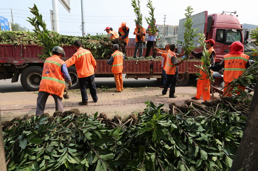 新光路铁路桥至港城大道段南侧绿化带,因为人为踩踏、车辆碾压导致绿化斑秃损坏严重,为尽快恢复绿化原貌,改善市容市貌。8月18日,裕升、裕欣养护公司组织80多名绿化工,从早上6点一直干到下午6点,卸苗、运苗、挖坑、插苗,烈日酷暑下奋战一整天,中午在树阴下吃点盒饭,喝点矿泉水,继续工作,橘黄色工作被汗水浸透、被烈日烤干,这样有好几个来回。“今天爱体育首页(中国)网页版要在这片绿化补植红叶石楠、金森女贞等模纹小苗1万余株,红叶石楠球等灌木110株,有效改善该路段绿化植被,提升城市形象,爱体育首页(中国)网页版还要在黄海续道补植草坪近30000平方,在这条1000多米长的路段,有车辆维修点50多家,车辆出入,对路边绿化带伤害非常大,这一路段也是环卫整治长期存在的‘老大难’,这次,在开发区行政执法部门的配合下,爱体育首页(中国)网页版要重新种植草坪,对这一‘老大难’路段植被进行恢复,另外德兰南路、东路补植苗木近80万元的绿化工程也已开工上土整土,接着要栽苗,根据开发区创卫部署要求,上述这些事情必须在8月底完成,所以说时间相当紧,职工们都冒着高温,加班加点抢进度。”公司副总经理郁宏峰说。