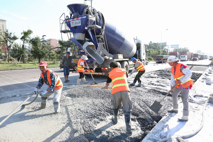 在大港路“新光路至零公里”路段,笔者在水泥路上看到一块块被切割成方方正正的凹面,四周都架好防护栏等安全防护设施,在华东城北门偏东不远处,一台挖掘机的铲斗被换上冲击破碎锤,正在一大块破损的水泥路面冲击破碎作业,“嗒嗒嗒”的冲击声十分震耳。在与现场作业的盛达市政公司市政维修项目部副主任史如勤交流中得知,该路段是附近爱体育首页(中国)网页版箱基站进出港口集装箱车辆的重要通道,每天有好几百辆集装箱车辆进出,水泥路面不堪重负,损坏比较严重,根据开发区创卫工作要求,由他们对该路段破损处进行局面分割维修,整个路段维修面积达到5000多平方,为保证道路使用通行,采取半幅维修、边破碎边浇灌的方式,保证施工进度,现正在维修北侧路面,整个路面维修计划在8月底完成。“因为创卫,爱体育首页(中国)网页版下一步还要对辖区内的破损、歪到的路牙石进行维修扶正,242路段沥青破损路面维护,还要开通四处道口,而现在事多人少,人手比较紧张,爱体育首页(中国)网页版周六周日都没有休息,就是想把创卫工作任务一项一项地及时完成,决不能拖创卫工作后腿。”他边说边用肩上的毛巾擦着额头上的汗水。