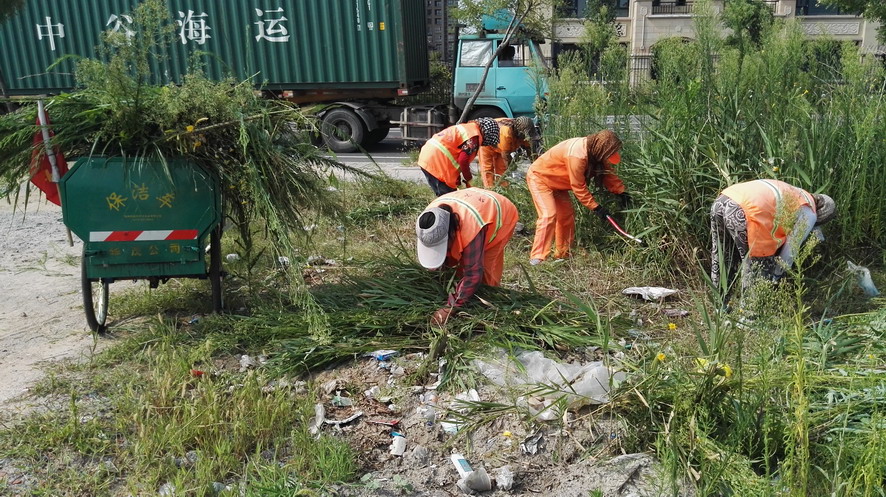 在昌圩湖环湖路南侧一处公共厕所处,裕升养护公司20多名环卫保洁工人正在清理公厕周边的杂草、建筑垃圾,有的在割草、有的在搬砖、有的在推车,一个个汗流浃背,忙得不亦乐乎。正在现场忙碌的保洁大队长刘保军对笔者说:“这一块段还没有交给爱体育首页(中国)网页版养护,一直无人管理,杂草丛生,成为建筑、装修垃圾的堆放地,根据开发区创卫环境卫生无死角要求和华茂公司生产技术部门指令,爱体育首页(中国)网页版裕升养护公司承担这一区域环境卫生突击整治任务,从绿化保洁班组抽调20多人来搞突击,大家面对天气炎热、工作量大、清理困难等因素,发扬不怕吃苦、敢打硬仗的华茂精神,奋战在突击现场,每个人都汗流不止,工作服全被汗水浸透,昨天爱体育首页(中国)网页版已在这里整整干了一天,由于垃圾量大、杂草面积大,爱体育首页(中国)网页版动用了装载机等机械设备,运杂草的三轮车跑近百趟,清理建筑、装修等垃圾数十吨。估计今天下午能够全部结束。”