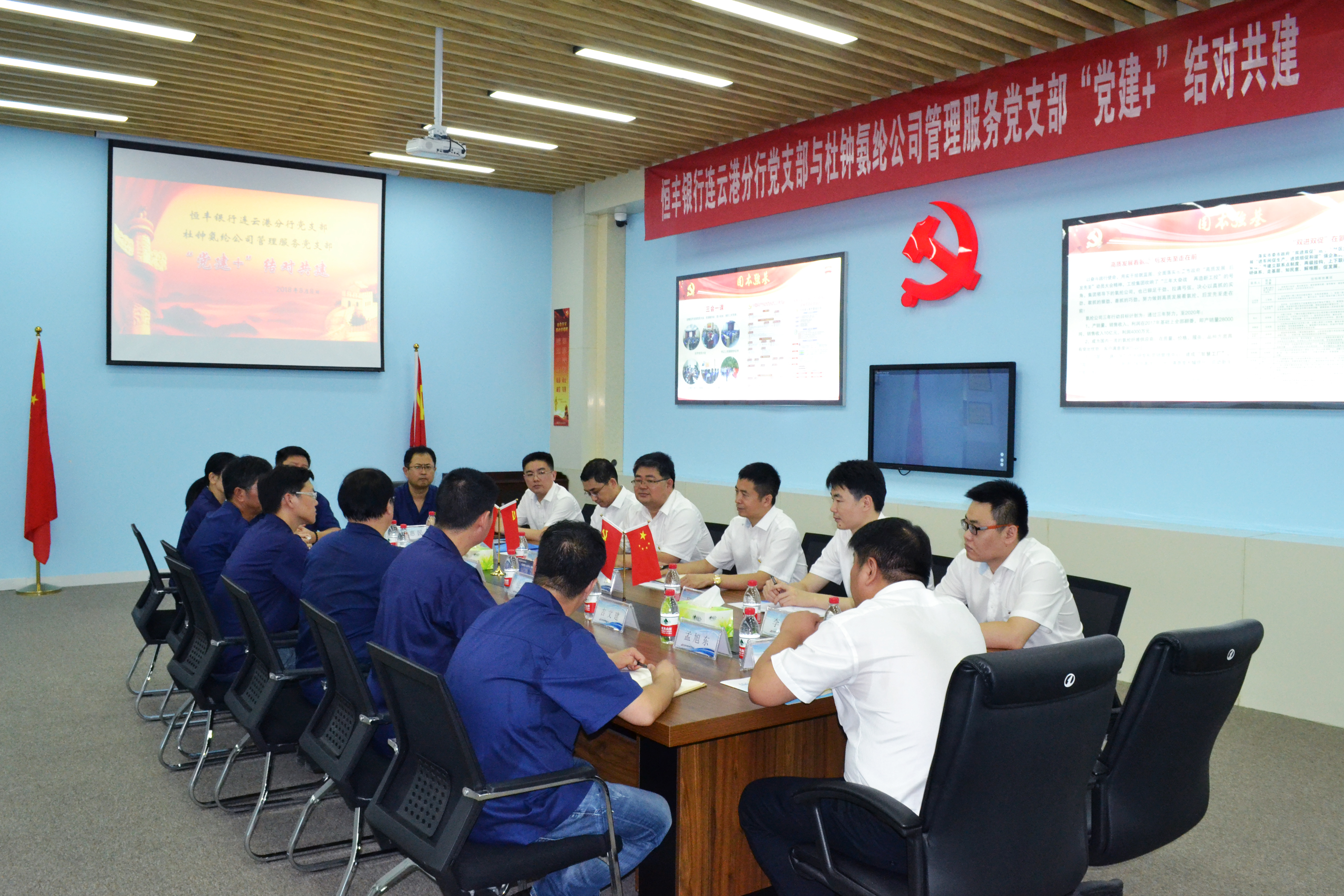 日前,氨纶公司管理服务党支部与恒丰银行连云港分行党支部举行“党建+”结对共建协议签约仪式。