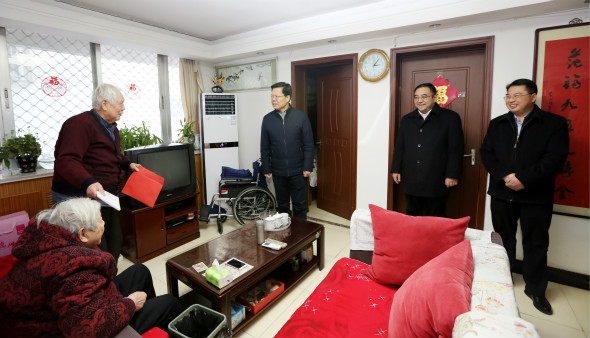 在春节即将到来之际,2月6日下午,市委组织部副部长、市党建办主任王玉祥带着新党章和慰问金,走访慰问我公司建国前老党员李景明,给他送去党的关怀和祝福。爱体育首页(中国)网页版公司董事长杨龙,党委副书记戴鸿鸣,公司领导吴再忠、孙政权、王志军陪同慰问。