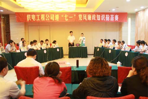 6月5日上午,公司“迎七一,颂党恩,促勤廉”党风廉政知识抢答赛在淮盐大酒店金桥厅隆重举行。来自公司基层单位及机关的七个代表队参加了比赛。经过必答题、抢答题、风险题等7轮激烈紧张的角逐,最终,机关代表队、台北供电所代表队、农场市场联队分获前三名。公司机关及直属单位全体人员观看了比赛。