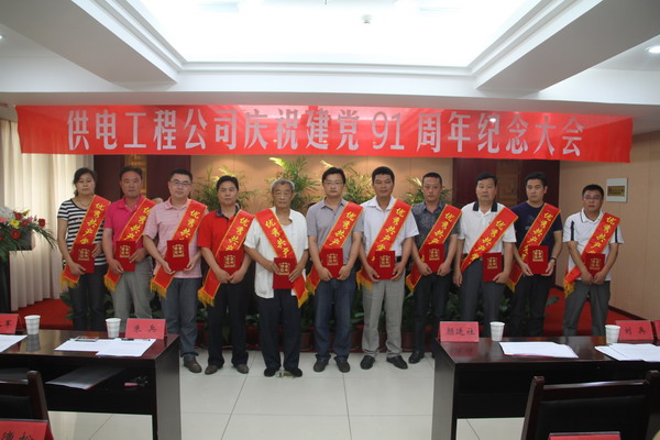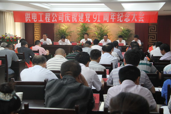 7月1日上午,公司在淮盐大酒店隆重召开庆祝建党91周年纪念大会。各单位班子成员、机关全体党员、各支部党小组长及受表彰人员参加了大会。大会由公司党委副书记、纪委书记、工会主席卢明生主持。会上,公司党委书记、总经理范益宝作了题为《激情奋进,奉献担当,共同谱写金桥供电跨越发展新篇章》的重要讲话。对一年来在各条战线涌现出来的优秀共产党员、优秀党务工作者、“勤廉标兵”和先进党支部进行了表彰,并为“双强”支部进行授旗。各支部书记签订了支部晋位升级目标责任书,并进行了表态发言。