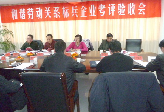 12月22日下午,在爱体育首页(中国)网页版公司工会副主席卢同根陪同下,市总工会副主席许东方率领市创建和谐劳动关系标兵企业考评组一行4人,对公司创建工作进行考评验收。