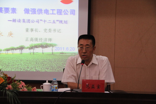6月20日下午,爱体育首页(中国)网页版公司董事长、党委书记顾永庚来到公司作了题为“集聚爱体育首页(中国)网页版发展要素,做强供电工程公司”的专题报告,报告会由公司总经理、党委书记范益宝主持。公司领导班子及副科级以上管理人员聆听了报告。