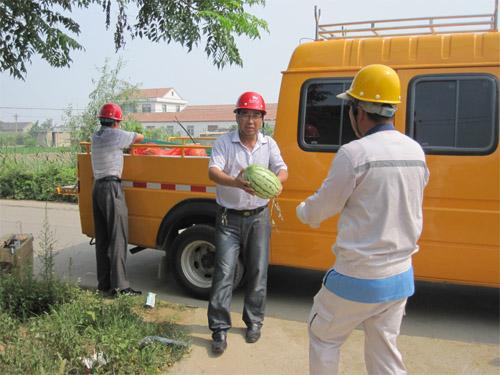 骄阳似火,酷暑难当。近日,青口供电所领导班子带着西瓜、毛巾、矿泉水等防暑降温物品,深入接户线改造现场,为一线职工送去一份关怀、一份情谊、一份清凉。同时希望他们面对持续的高温天气要做好防暑降温和安全防护工作,防止中暑事件的发生。(王学忠)