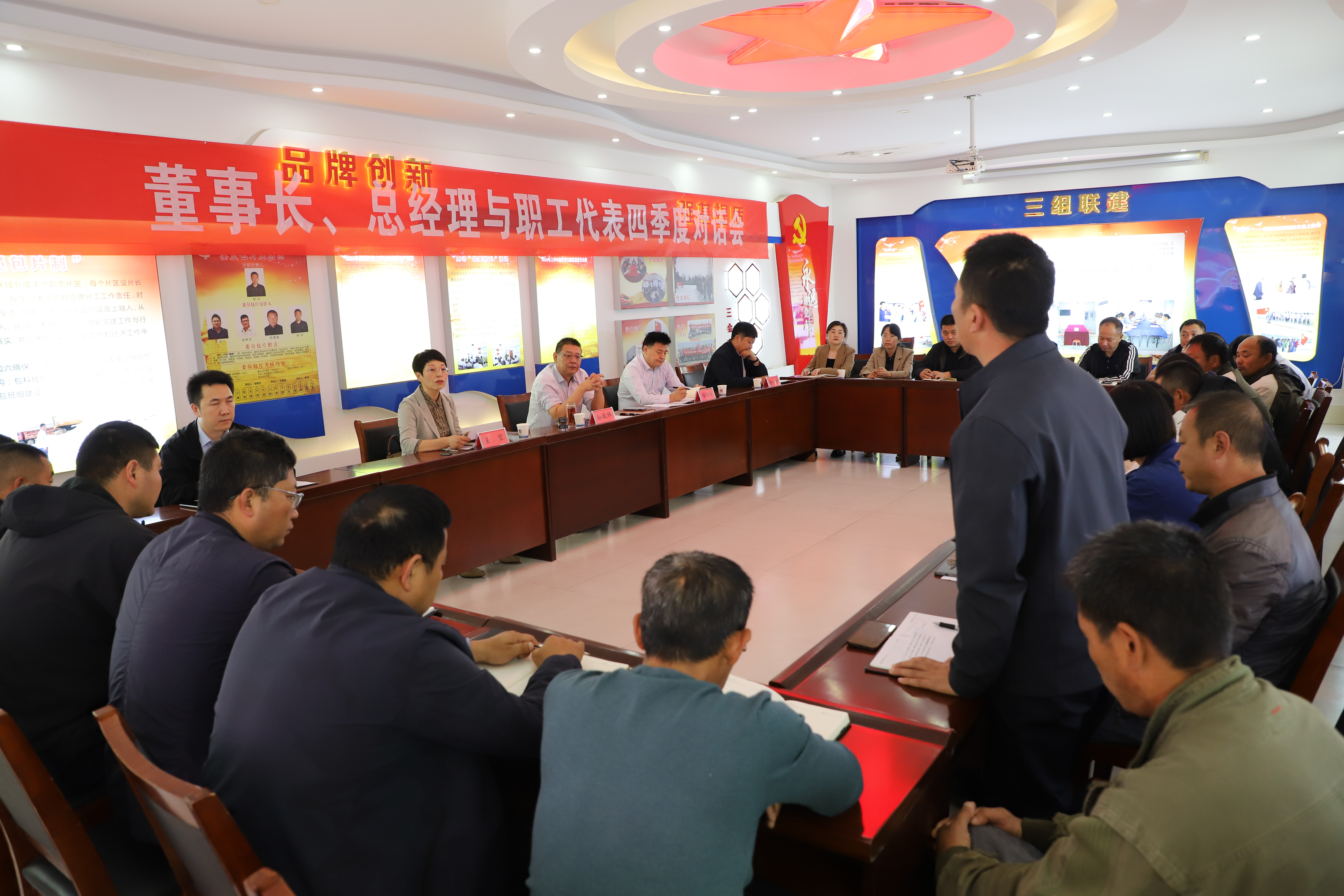 20231019日下午,产业工人代表与公司董事长、总经理齐聚一堂,就生产生活中遇到的问题提建议、献良策。