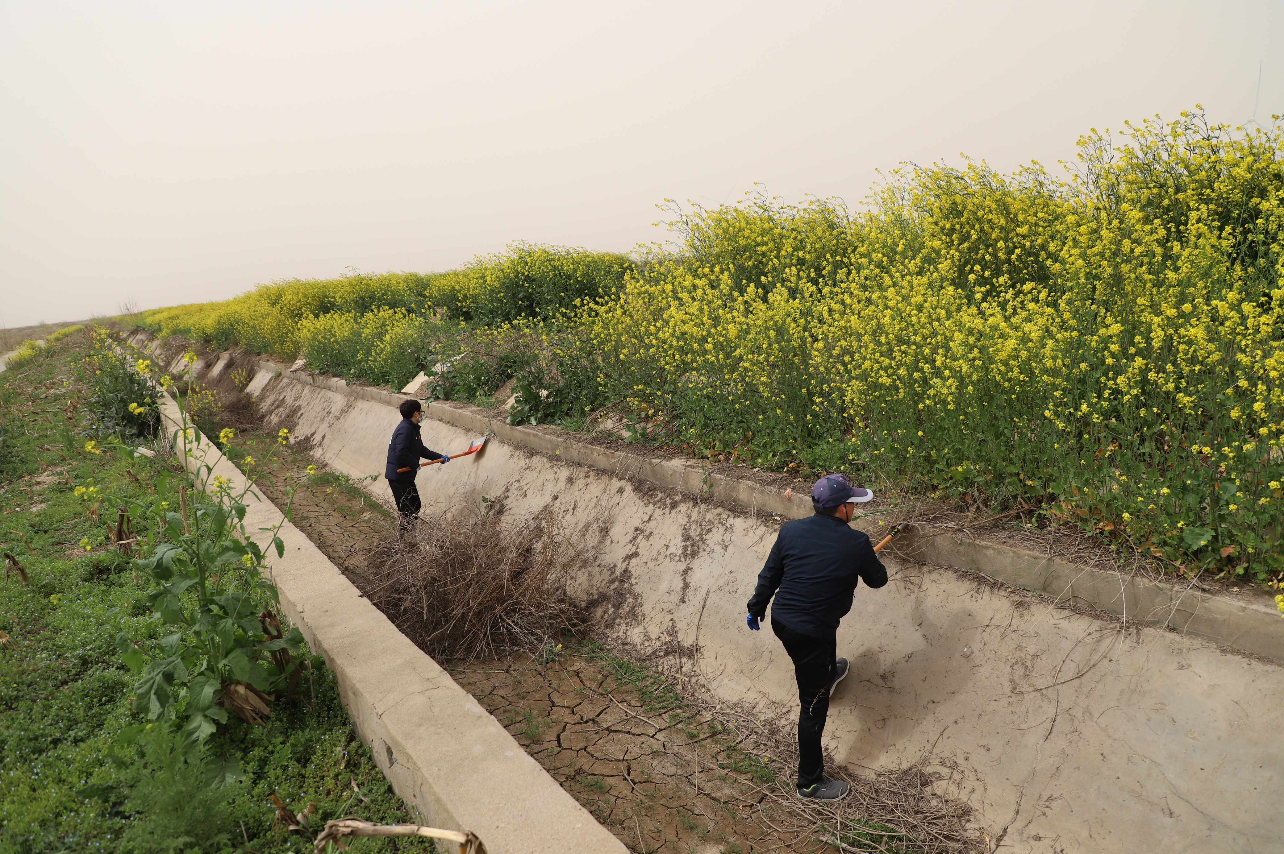 下午13:00,大家准时出发前往活动地点。到达活动场地,在机关党总支书记庄忠明的带领下,分成三个组行动,大家发扬不怕脏、不怕累的精神,积极参与,他们手拿镰刀、铁锨等工具,相互协作,党员纷纷撸起袖子加油干,有的除杂草、有的捡垃圾,你前我后,一个跟着一个脚步走,认真仔细地清理送水道里的各类垃圾、杂草等杂物,不放过任何一个死角。经过一个下午近4小时的努力,将3000余米的送水渠道的杂草、垃圾等杂物全部清理完毕。