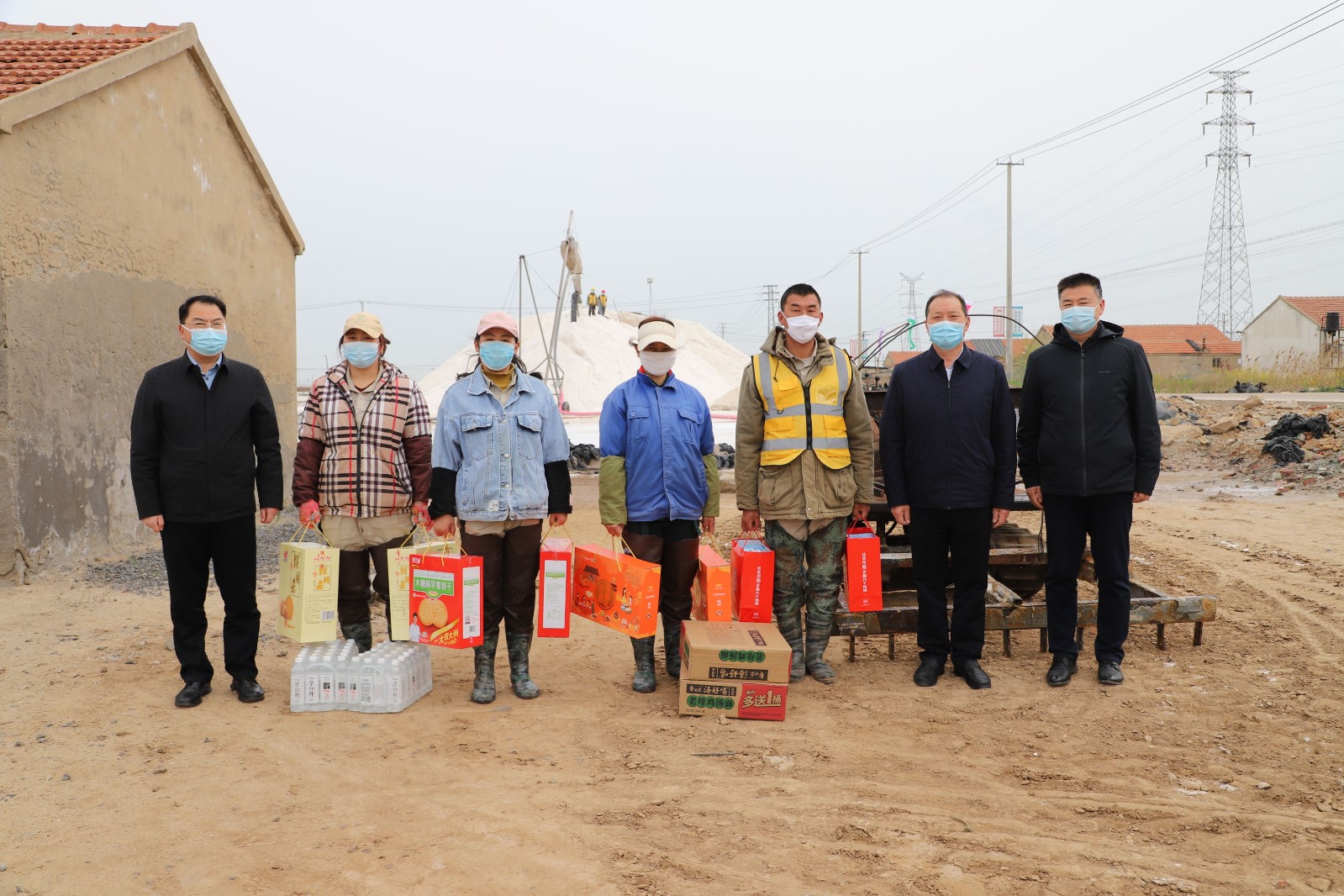 调研组一行首先来到日晒制盐公司了解复工复产情况,在新河制盐分公司八班扒盐现场,观看了无人驾驭远程摇控扒盐机的扒盐试验,对日晒制盐公司着力推进科技创新的做法给予充分肯定。戴鸿鸣与八班班长祝星星亲切交谈,深入了解在当前疫情防控下原盐一线员工的思想动态,叮嘱他要不断加强学习,提升综合素质,积极发挥劳模的表率和担当作用。戴鸿鸣还为奋战在扒盐一线的员工送来快餐面、饼干、饮用水等慰问品,向辛勤工作在生产一线的员工表示慰问,鼓励大家继续发扬连续作战,干就必胜的拼搏精神,全面夺取疫情防控、安全生产双胜利。