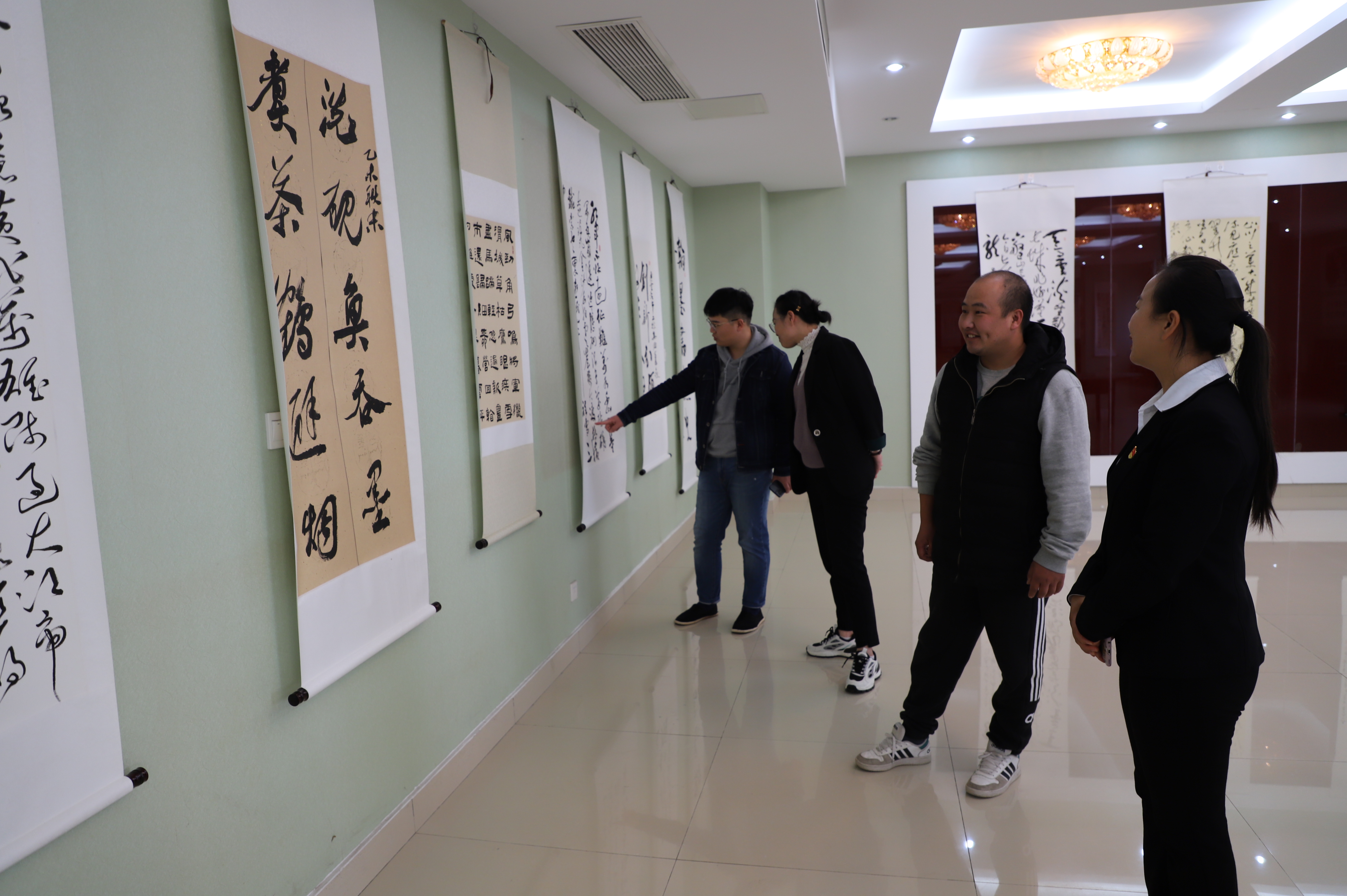 参展的优秀作品,吸引了不少干部职工。他们兴致勃勃地在作品前驻足品鉴,纷纷表示:这一笔一划、一景一物让他们感受到书画艺术魅力的同时,也感悟到红色文化的伟力,作为新时代的青年,将不负革命前辈浴血奋战换来的和平幸福,在自己平凡的岗位上作出不凡的功绩。