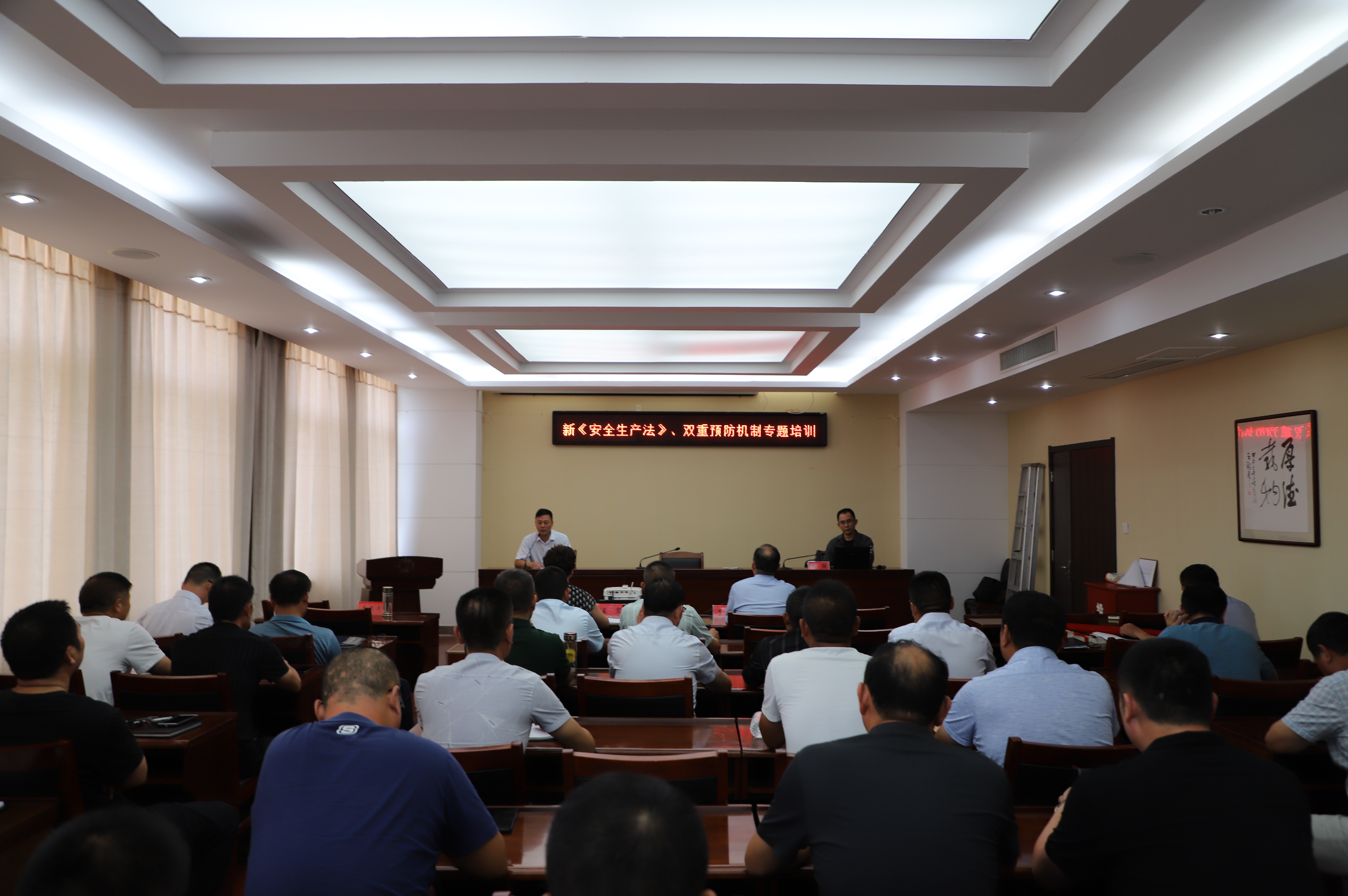 为了努力提高管理人员的安全意识,增强安全生产的责任感,9月23日特邀请连云港师范学校的教授来我公司进行新《安全生产法》、双重预防机制专题培训,公司领导班子成员、各部门负责人、各单位负责人、分管安全管理人员参加培训。