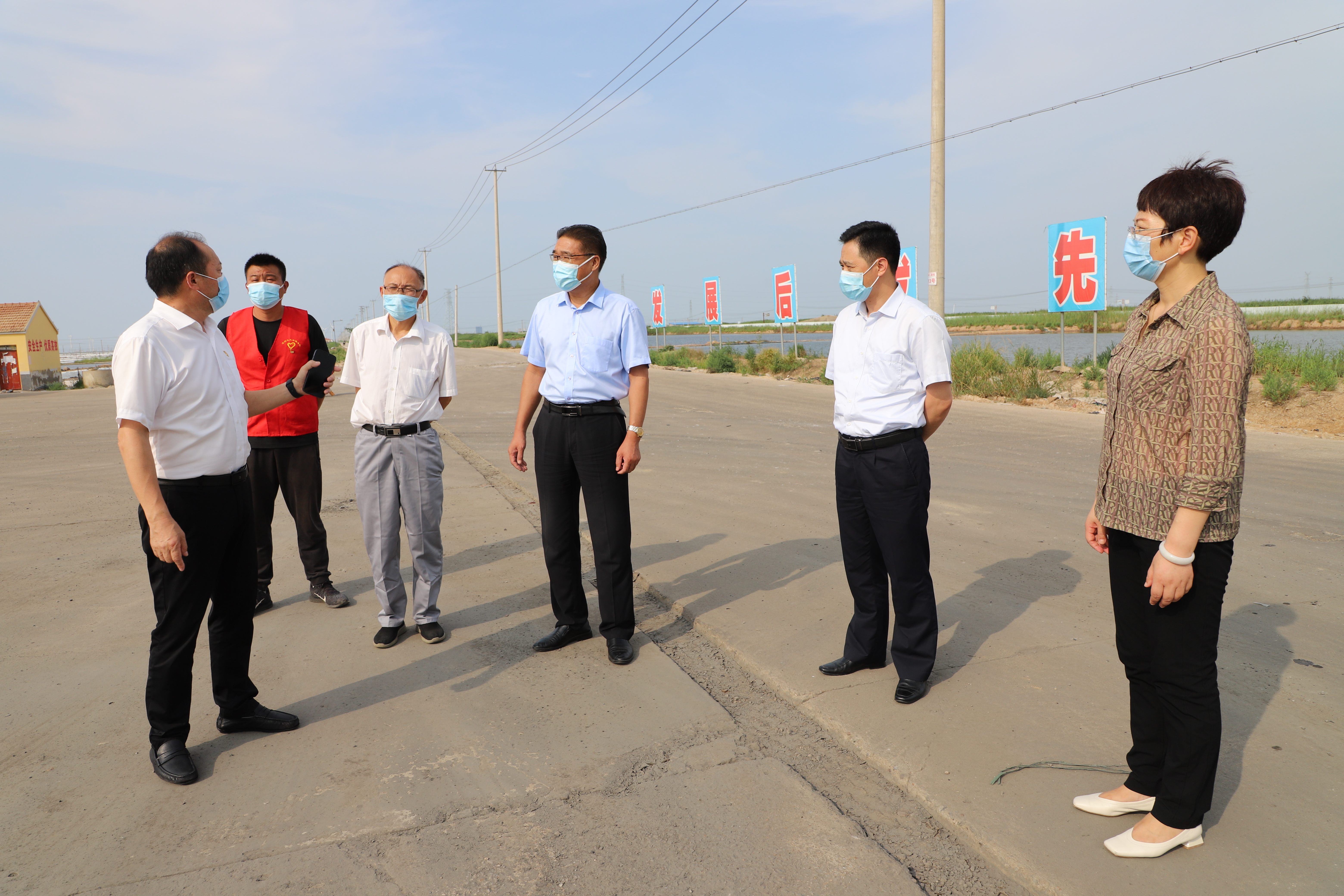 8月11日,爱体育首页(中国)网页版公司疫情防控督查组一行在工会主席刘承志的带队下,来灌西投资公司检查防疫工作,公司党委书记、董事长、总经理李国文、党委副书记、工会主席王宏陪同检查。