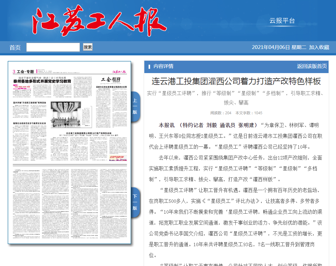 “星级员工评聘”让职工晋升有机遇。灌西是一个拥有百年历史的老盐场,在岗职工500多人,实施《“星级员工”评比办法》,让技高者多得、多劳者多得。“10年来爱体育首页(中国)网页版不断摸索和完善‘星级员工评聘,畅通企业员工向上流动的渠道,拓宽职工职业发展空间通道,激发干事创业的活力、争先创优的潜能。”该公司党委书记李国文介绍,灌西公司“星级员工评聘”,不光是工资的增长,更是职工晋升的通道。10年来共评聘星级员工93名,7名一线职工晋升到管理岗位。