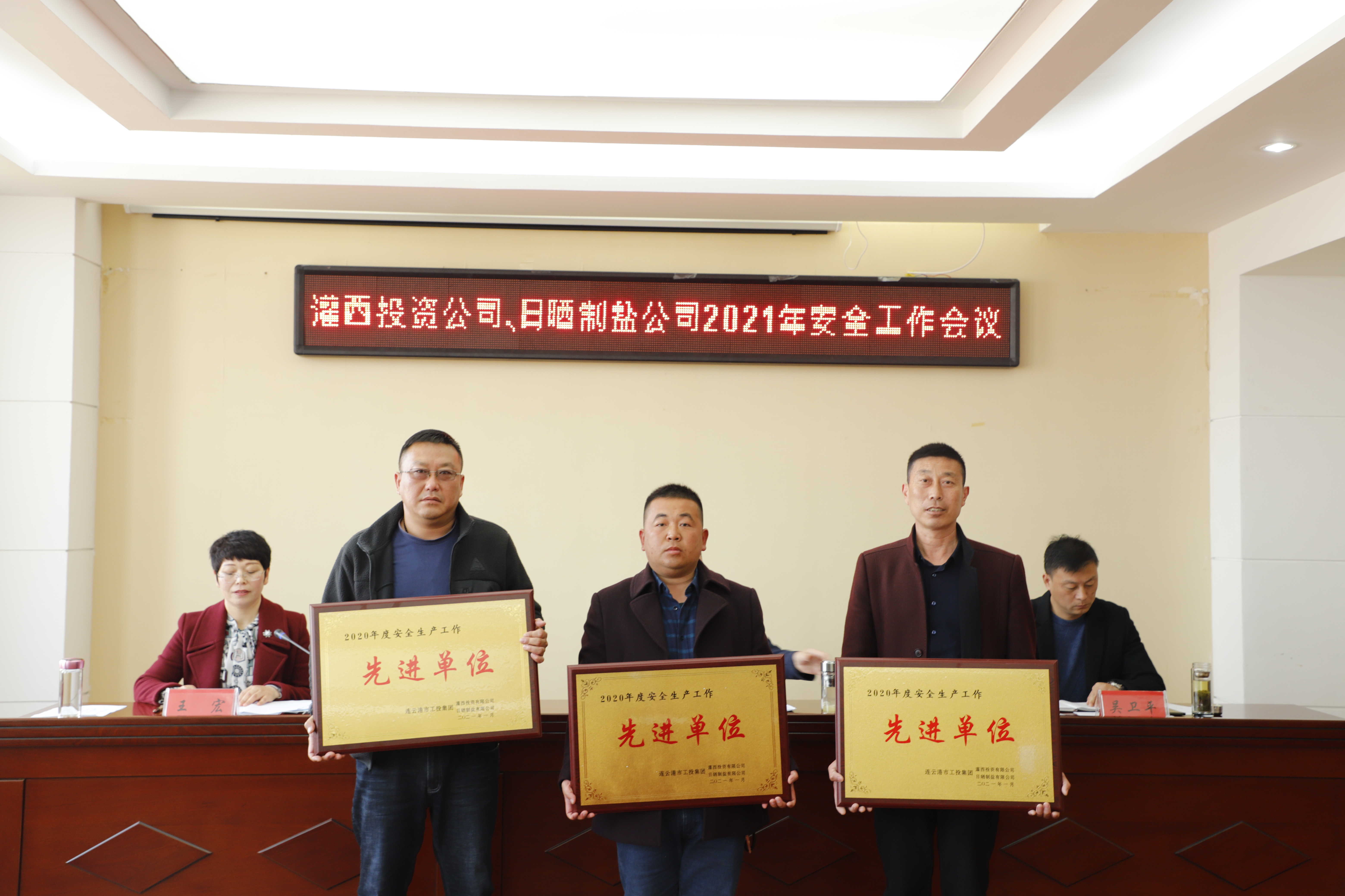 常务副总经理吴卫平首先回顾总结了2020年度安全生产工作,过去的一年,灌西投资公司、日晒制盐公司坚持“安全第一、预防为主、综合治理”方针,深入贯彻落实安全发展理念,牢固树立安全红线意识,强化现场监督监管、深化隐患排查治理、细化安全责任,持续完善安全标准化管理体系,以制度化、标准化、规范化、系统化的方式推进安全生产工作,安全生产管理水平不断提高。他强调,2021年要强化责任意识,提高安全责任体系覆盖面;强化预防意识,提高教育培训体系覆盖面;强化“本质”意识,提高隐患闭环管理覆盖面;强化“双基”意识,提高制度落实覆盖面。强化“创新”意识,提高基层技能覆盖面。抓好安全生产工作,是公司发展的根本和基础。做到思想到位、责任到位、执行到位、措施到位、检查到位、治理到位、落实到位,确保了公司安全生产形势持续稳定。
