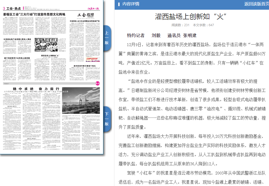 12月11日,《江苏工人报》第三版刊登灌西公司创新如“火”