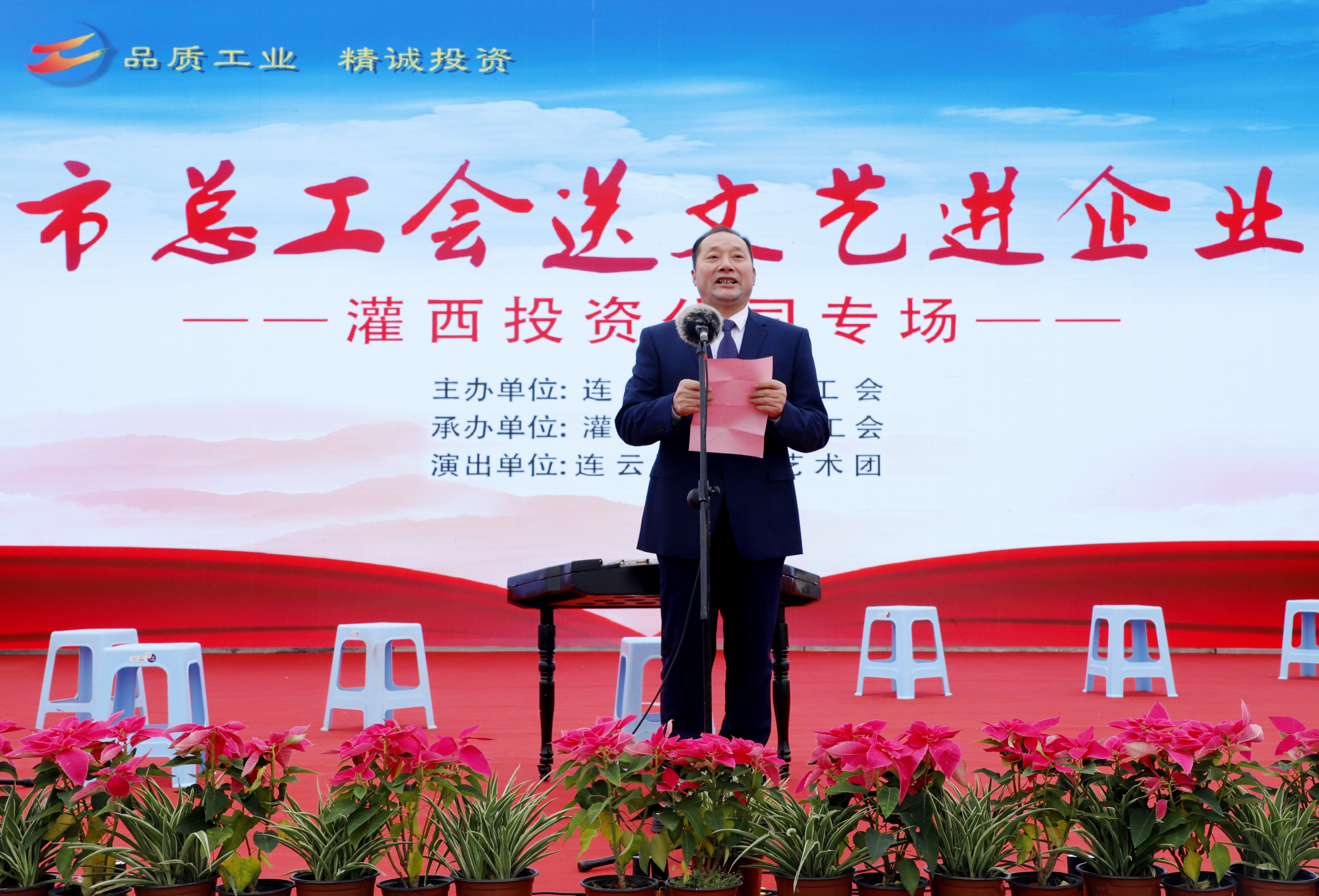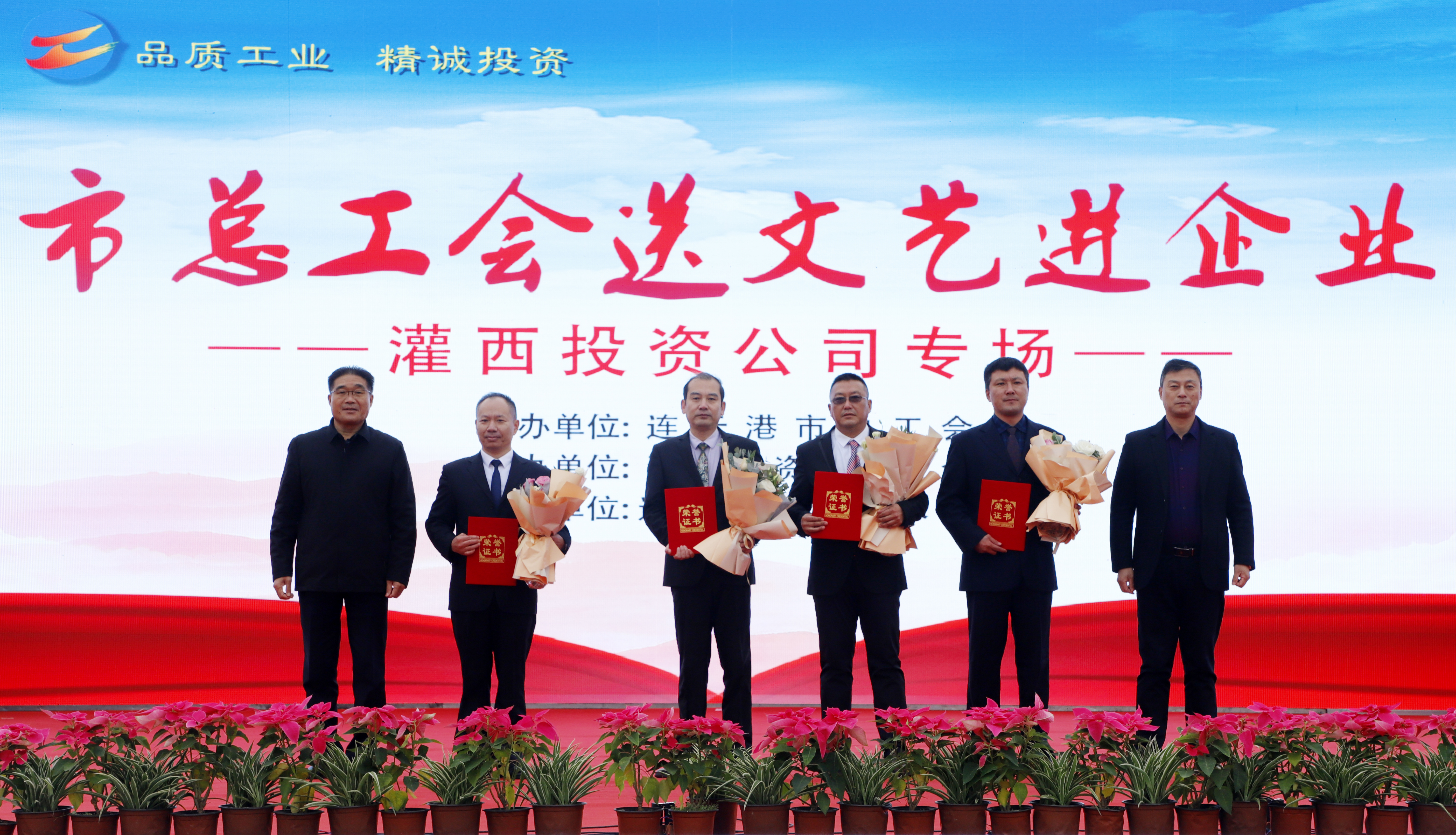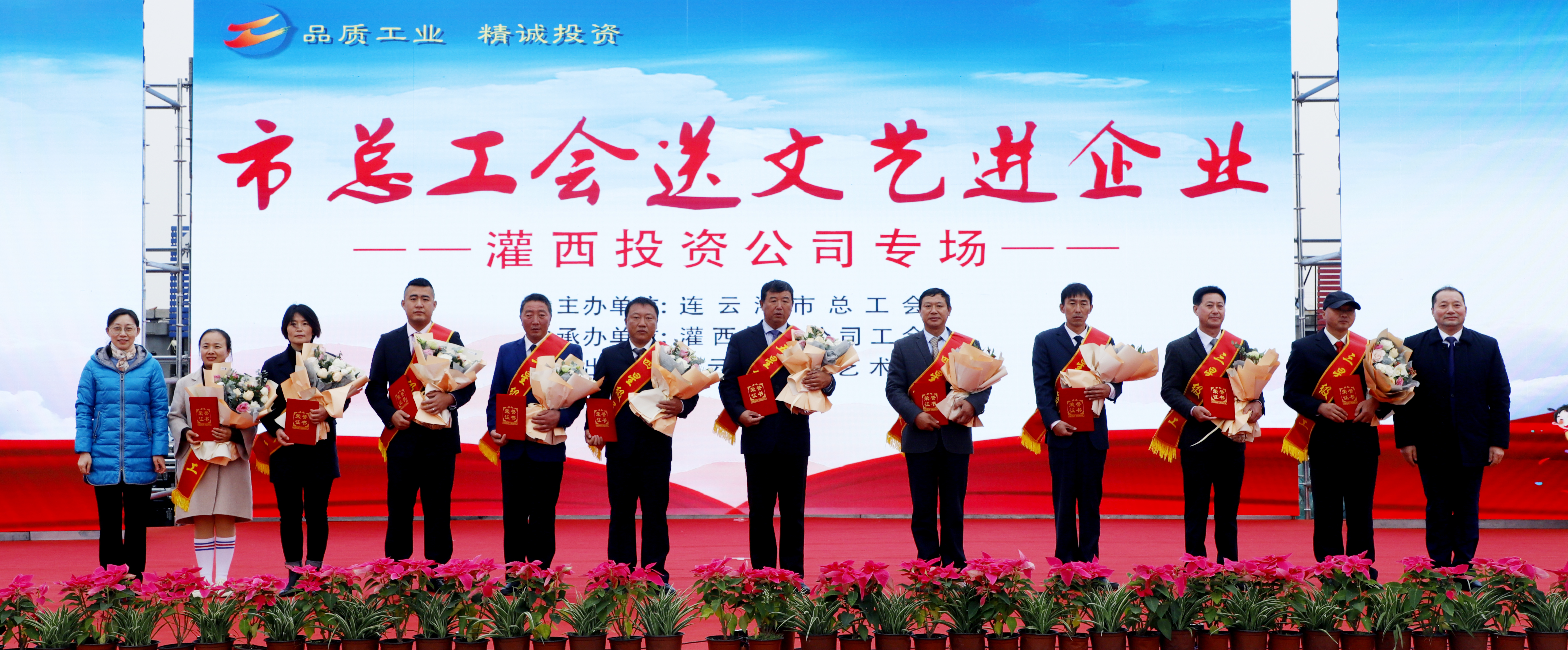 11月25日,由连云港市总工会主办、连云港市工投爱体育首页(中国)网页版灌西投资公司协办、连云港市职工艺术团参演的“市总工会送文艺进企业”演出活动在灌西中二圩职工广场举行。市总工会党组书记、副主席丁维杰,爱体育首页(中国)网页版纪委书记汪群、工会主席刘承志,投资公司党委书记、董事长、总经理李国文及公司领导班子成员与灌西700多名干部职工群众共同享受了此次“文化”盛宴。