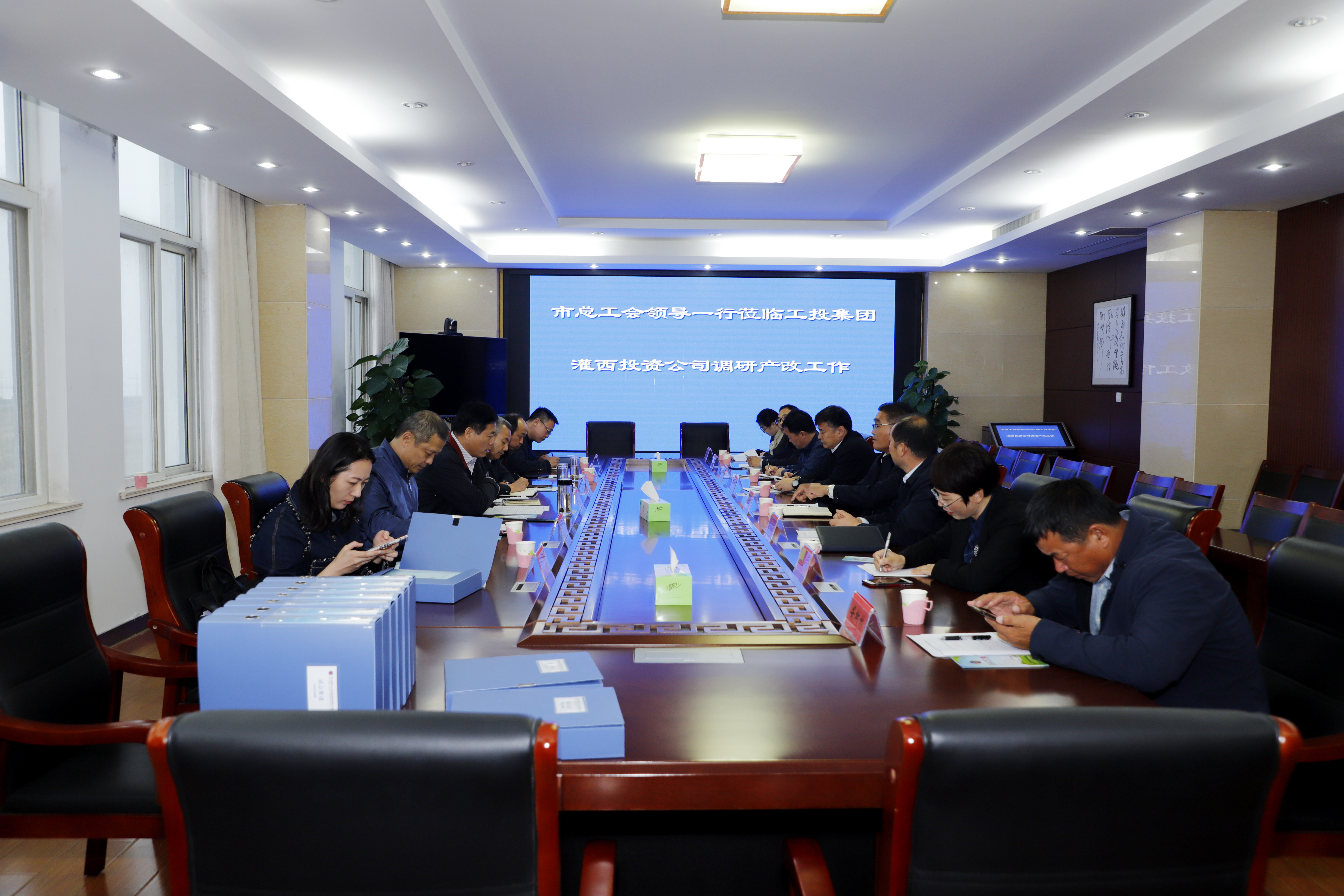 10月21日,市总工会党组书记、副主席丁维杰一行来工投爱体育首页(中国)网页版灌西公司调研产改工作,爱体育首页(中国)网页版工会主席刘承志、投资公司党委书记、董事长、总经理李国文、党委副书记、工会主席王宏陪同调研。