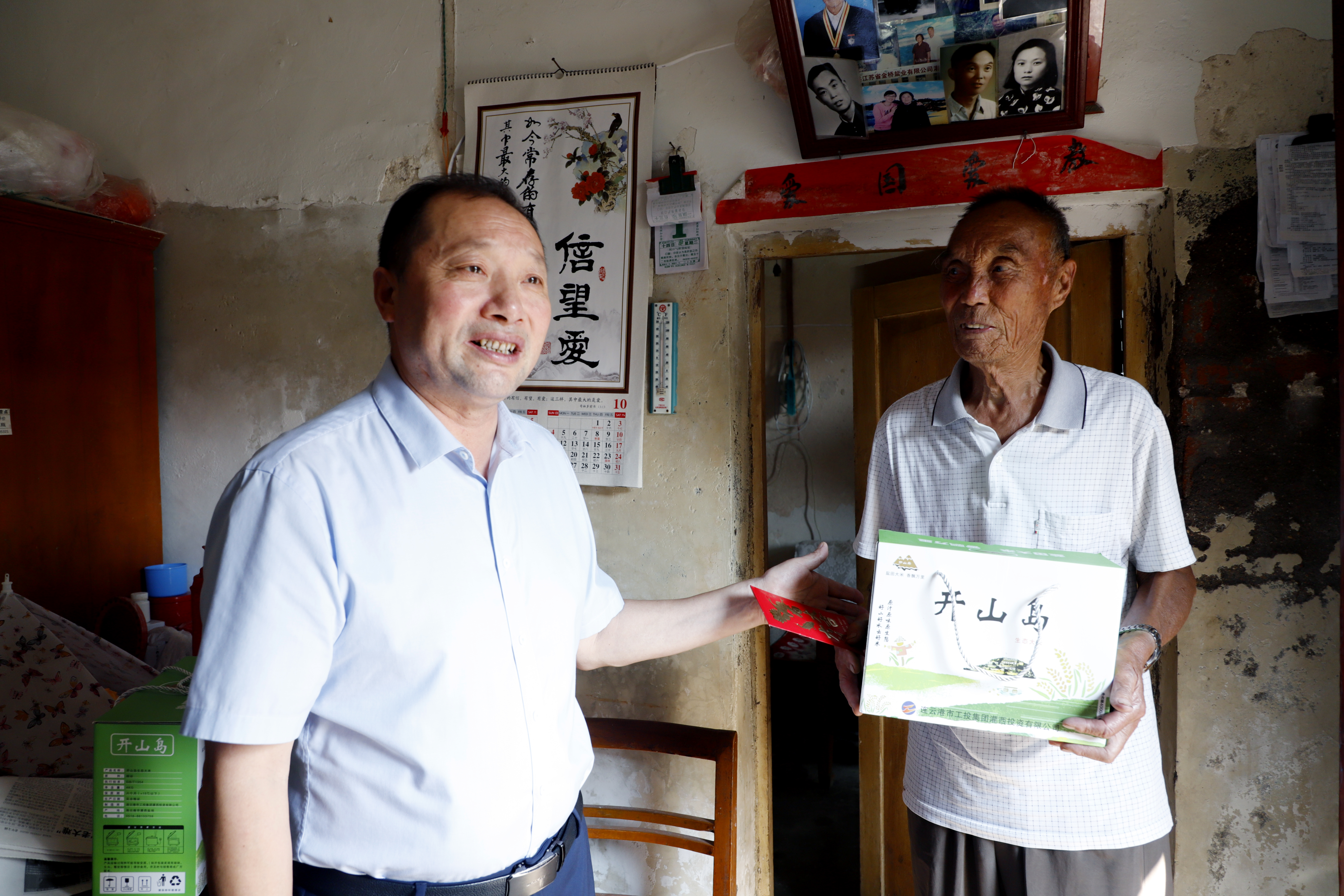 在中二圩社区老同志方建家中,李国文搀扶老人坐下,与老人及其家人围坐一起,亲切地拉起了家常,倾听老人讲述自己的抗战经历。详细询问方老的身体健康情况和生活起居习惯,并代表灌西投资公司党委向他致以亲切问候。(张明建)