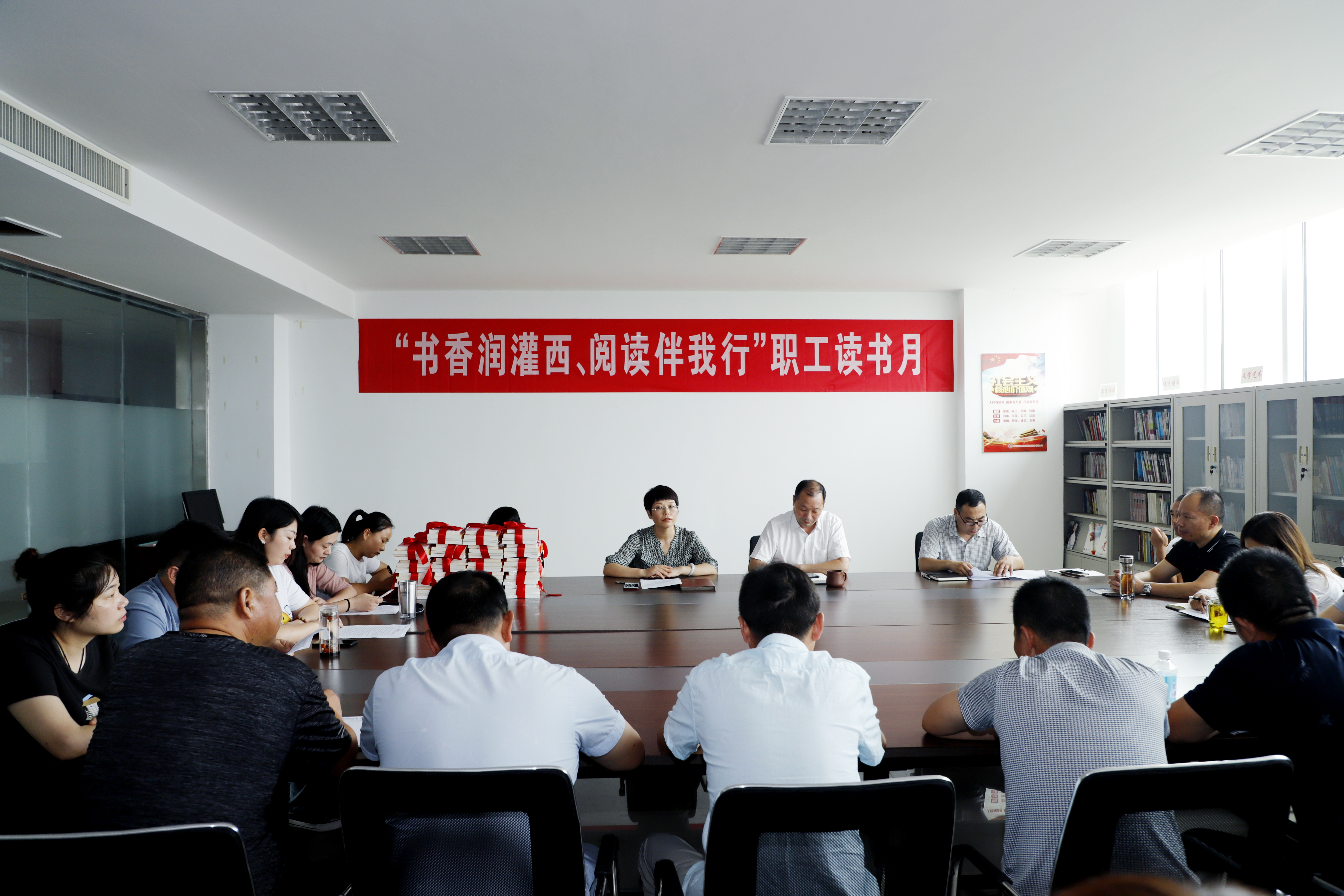 为进一步激发广大干部职工爱书、读书的热情,培养职工以学习推动工作、以工作促进学习的行为习惯,8月7日下午,灌西公司工会在机关四楼图书室开展读书交流会活动,这标志着该公司“书香润灌西阅读伴我行”读书月活动正式启动。公司党委书记、董事长、总经理李国文,党委副书记、工会主席王宏,各单位分会主席、女工委员,公司工会相关人员参加了活动。