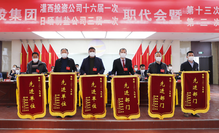 大会圆满完成了灌西投资公司第十三届、日晒制盐公司第三届工会委员会、经费审查委员会、女职工委员会,灌西投资公司第十六届、日晒制盐公司第三届职代会换届选举。签订了《2020年度集体合同》《2020年度目标责任认标书》;与会代表认真履行职责,审议通过了总经理工作报告,通过了大会《决议》、有关方案和意见。宵洋物流公司、新河制盐分公司、明威农业公司、市场销售部分别作了表态发言。大会对2019年度先进单位、部门、先进班组、先进个人和星级员工进行了表彰。(张明建)