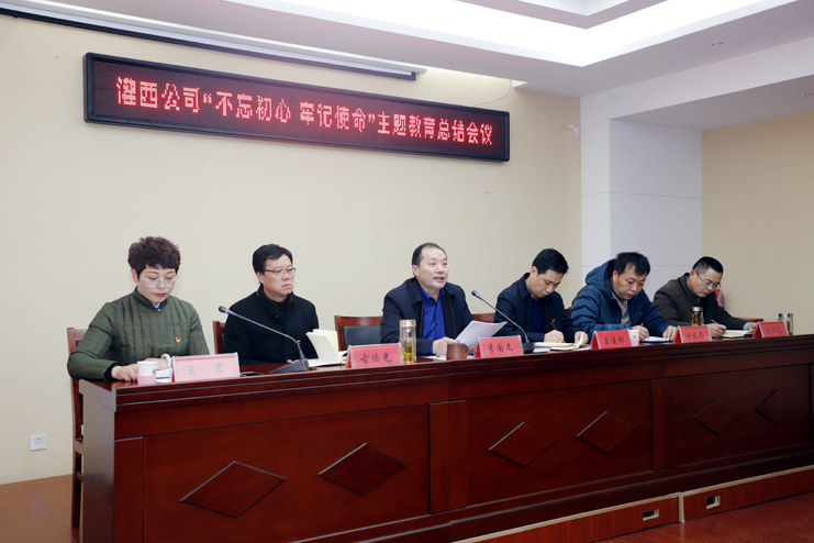 1月16日下午,灌西投资公司在机关四楼会议室召开“不忘初心、牢记使命”主题教育总结会议。投资公司主题教育领导小组组长、党委书记、董事长、总经理李国文作主题教育总结讲话。爱体育首页(中国)网页版第四指导组组长王建松到会指导并讲话。公司党委副书记、纪委书记、工会主席王宏主持会议,各单位党政主要负责人、党群工作部、公司党委主题教育领导小组办公室、机关全体党员参加会议。