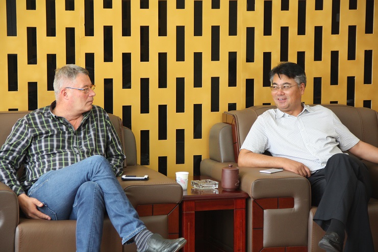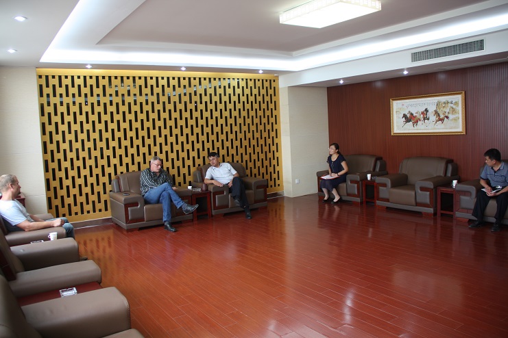 7月11日,北欧农庄生猪养殖有限公司首席执行官杨林伯一行来我公司洽谈合作事宜,投资公司董事长、党委书记王德志等参与洽谈。