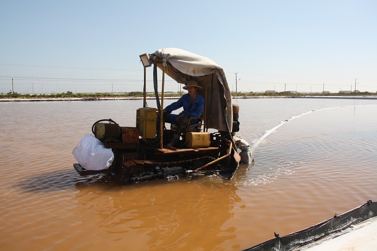 9月2日,在埒南制盐分公司8班滩头,机械轰鸣声不绝于耳,一台唐三〇活碴机在盐池内来回穿梭,正有条不紊的进行着活碴工作。另一边,一台电力驱动的唐三〇也在盐池内缓慢的移动着,几名工作人员密切注视着配电箱电压的变化情况,进行着正式扒盐前扒盐设备的各项调试工作。据了解,今年日晒制盐公司对扒盐设备进行了进一步的升级改造,将原来的4寸管道升级到了5寸,并相应增大了机泵的功率,以满足输送需求,与此同时,机电服务公司还对管道连接法兰进行了改进。据介绍,设备升级后,每小时最大理论扒盐量将由原来的30吨提升到50吨,这不仅减少了扒盐时间,同时也有效降低了参扒人员的劳动负荷,更节约了成本支出,为奋力冲刺全年生产目标奠定扎实的基础。(封杨)