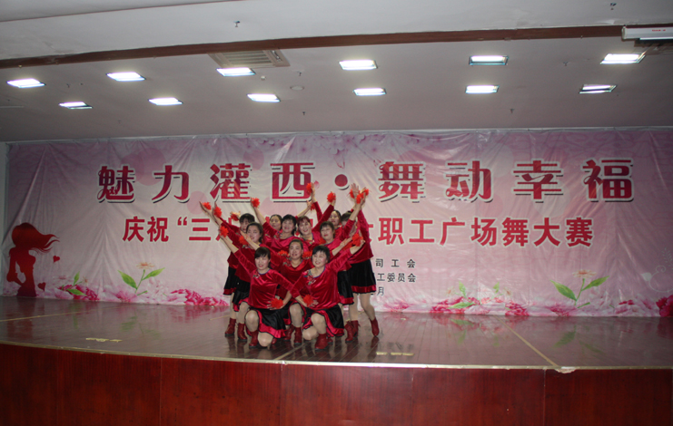 3月8日下午,灌西投资公司第四届“魅力灌西•舞动幸福”广场舞比赛在灌云县临港产业区管委会礼堂举行,由公司各单位的女工组成的8支代表队参加角逐,广大女工用婀娜的舞姿和精彩的表演庆祝国际“三八”妇女节的到来,观看比赛的职工群众有400余人。